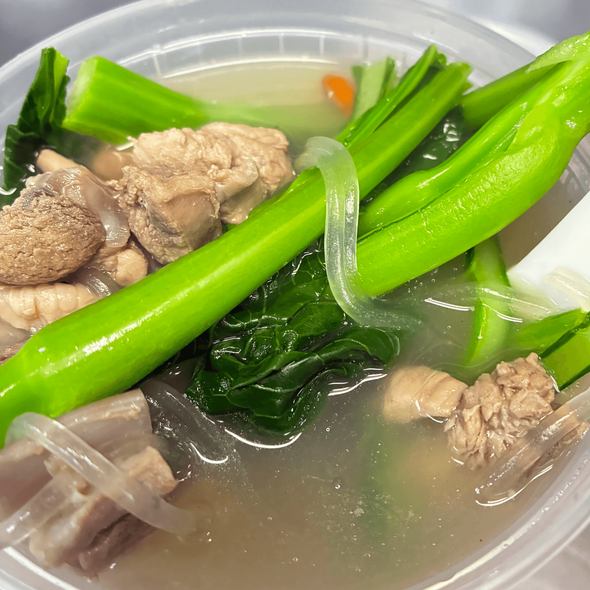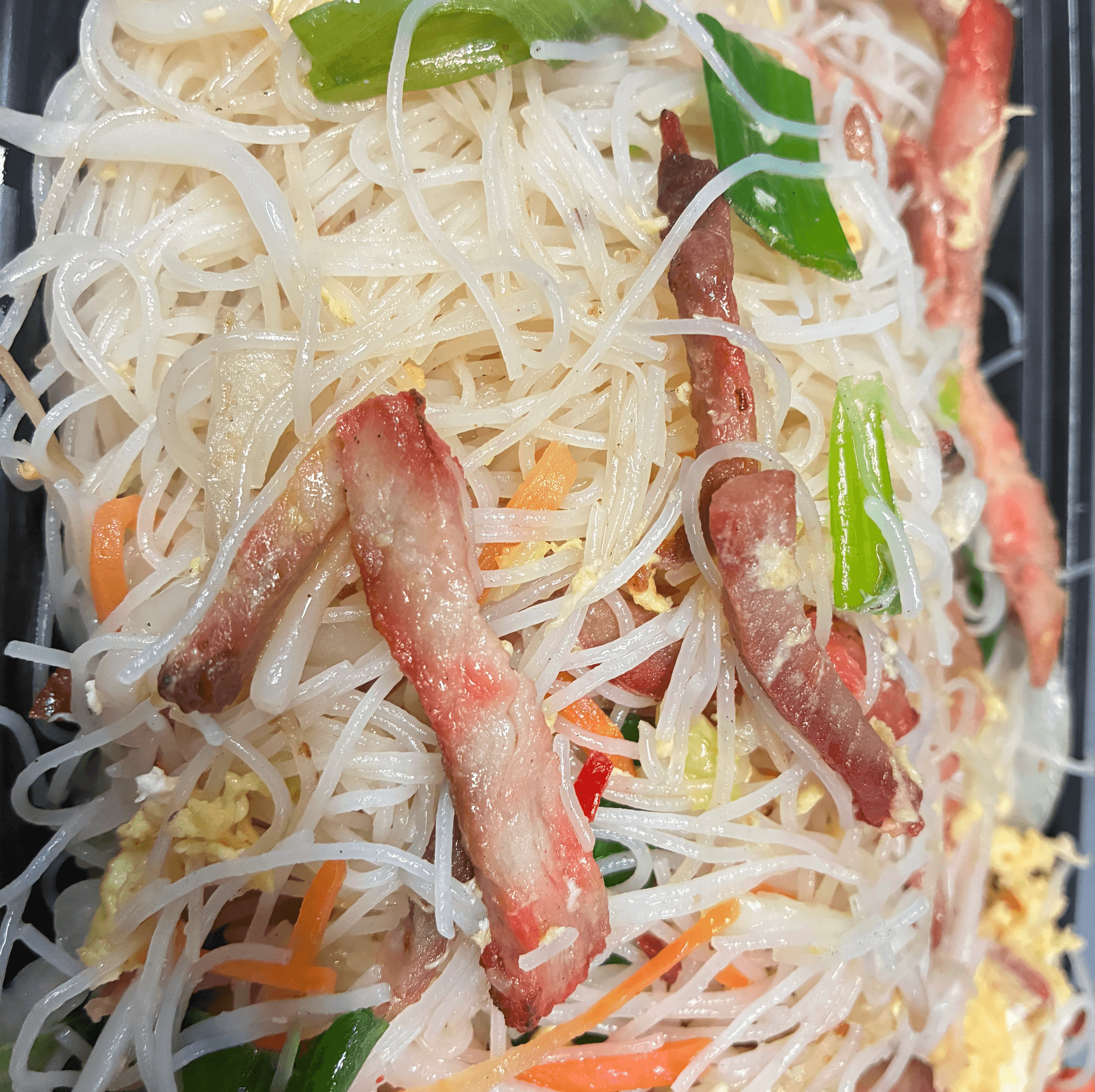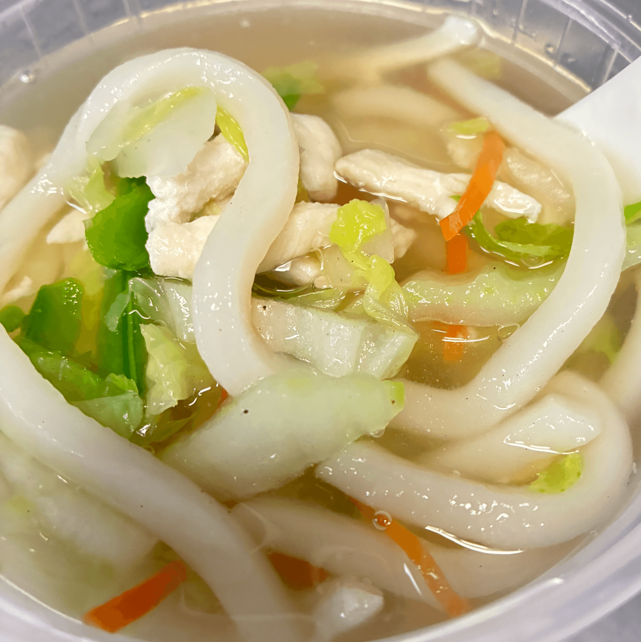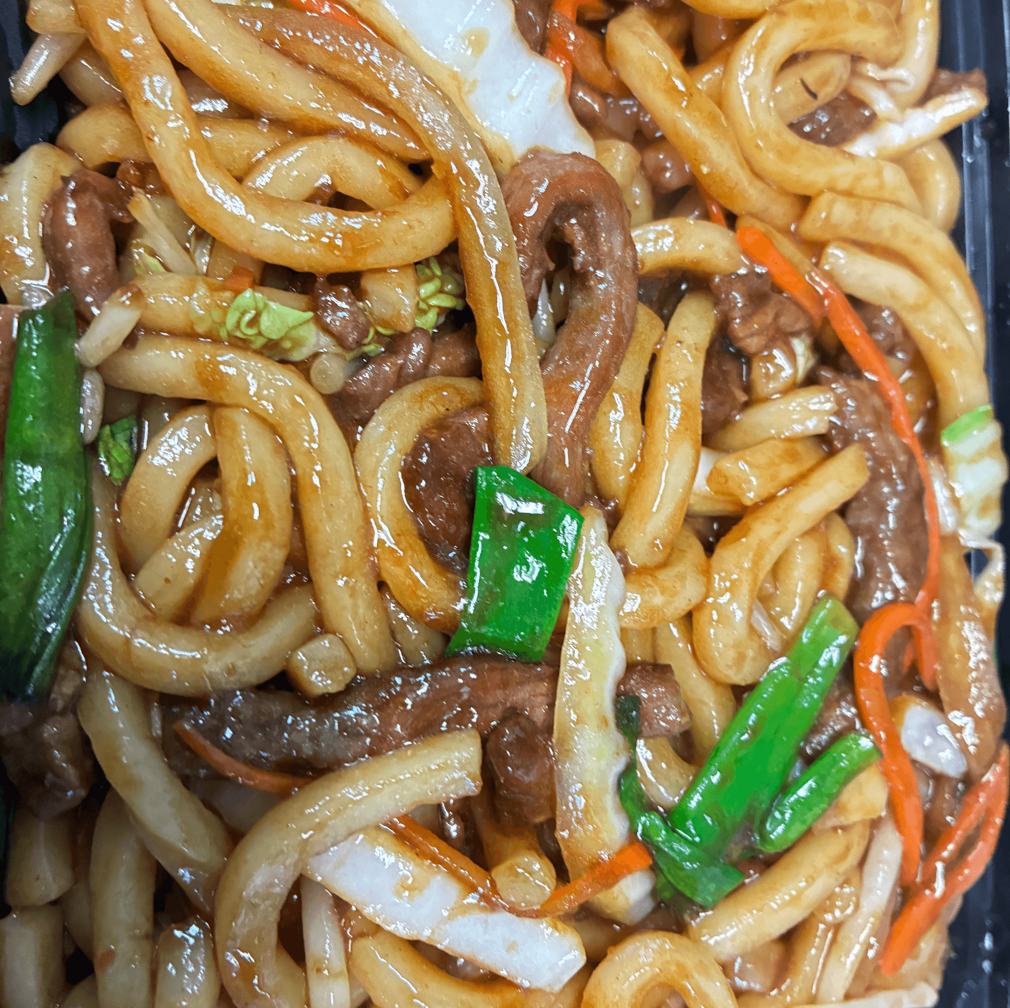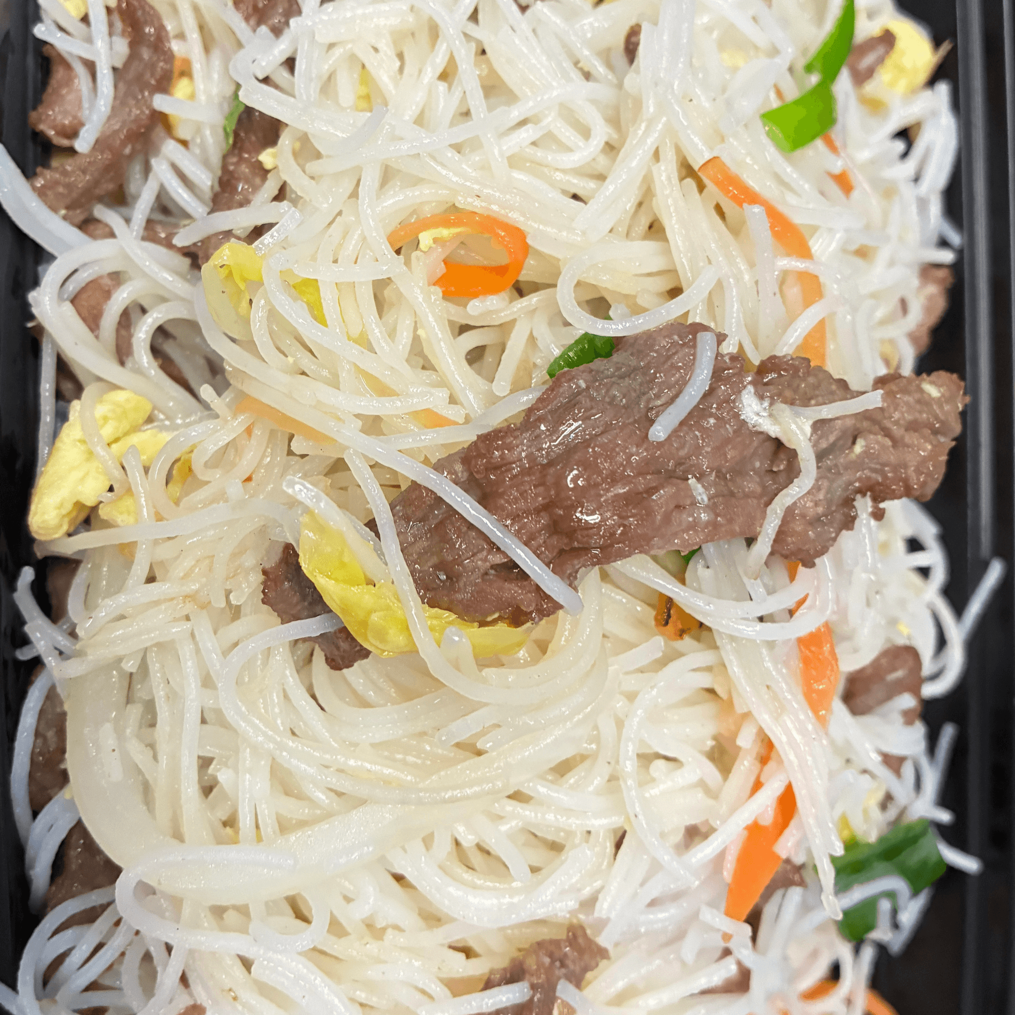 Soft egg noodles with chicken ,onions ,cabbage carrots , bean sprouts