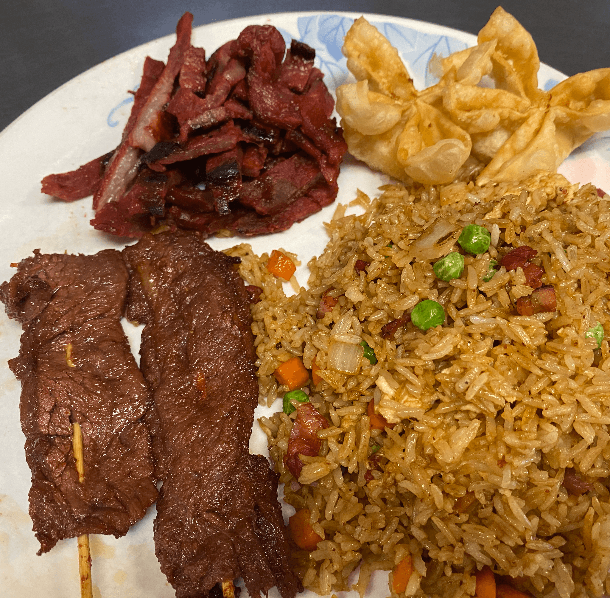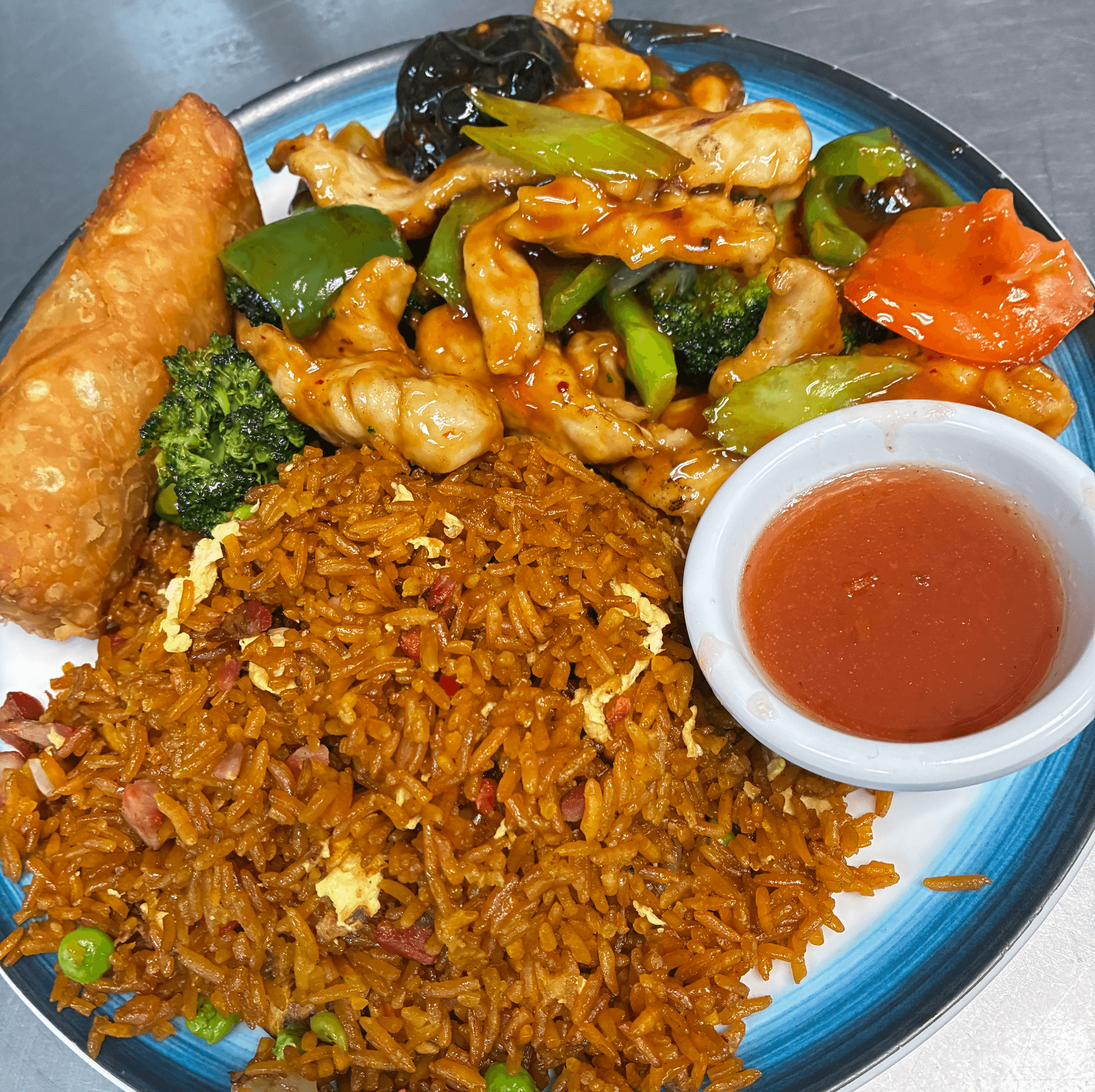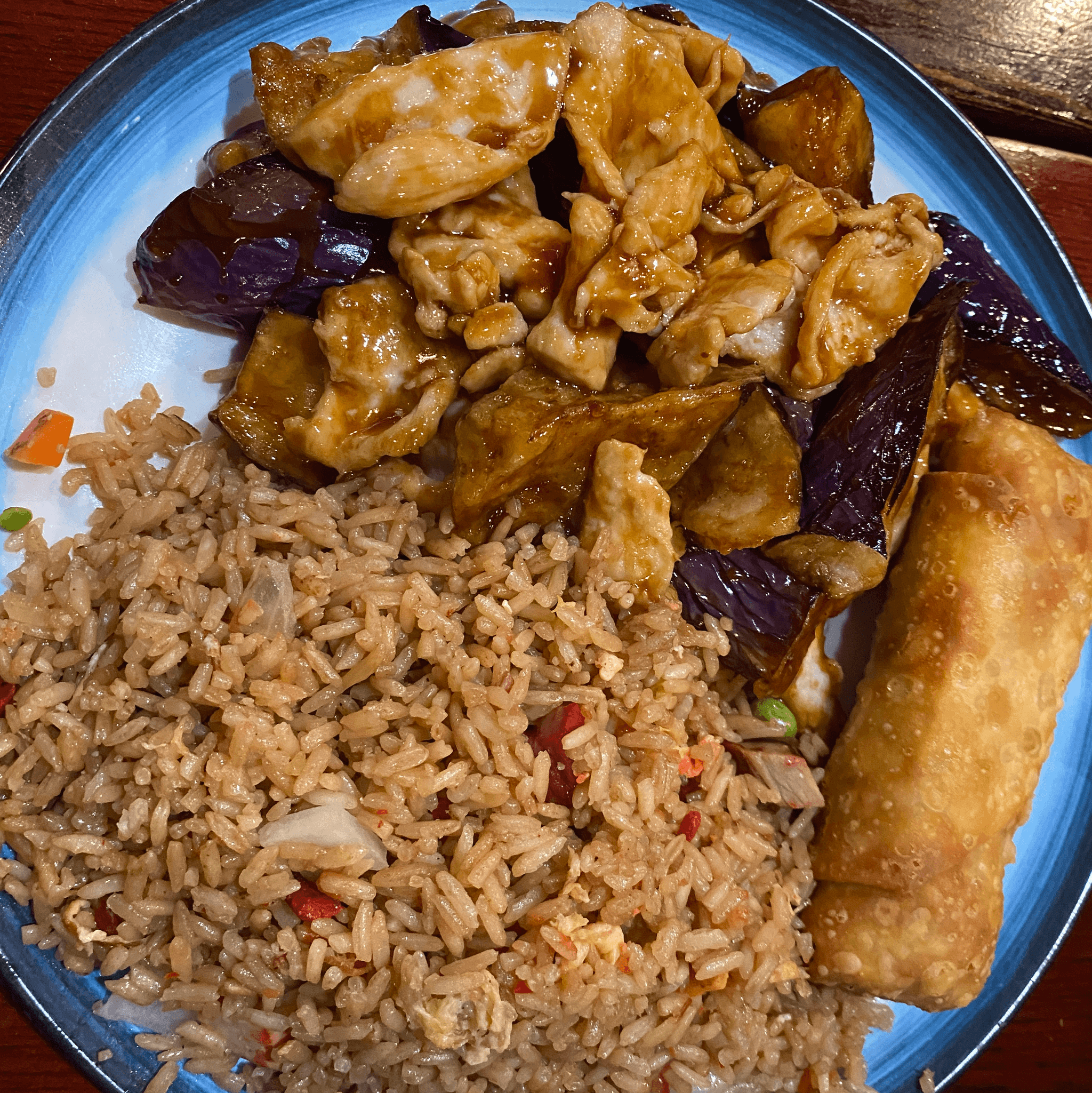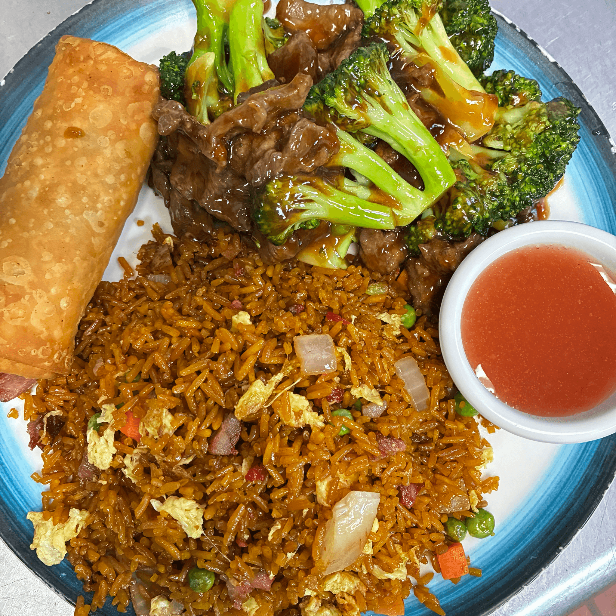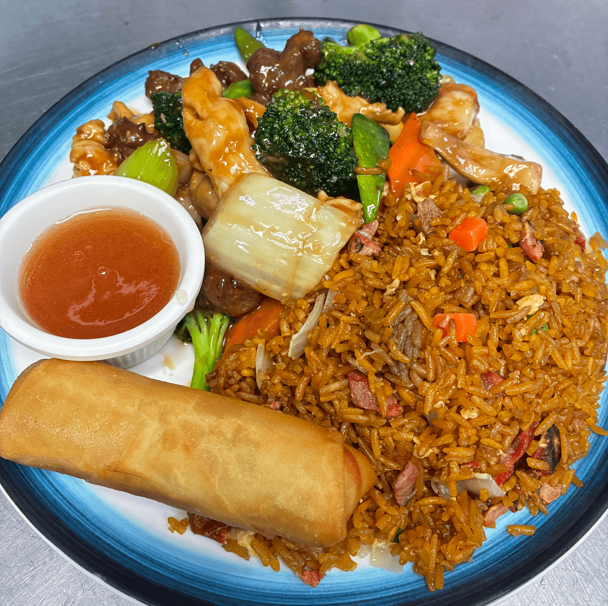Chicken, beef and shrimp veg served with pork fried rice, and choice of side