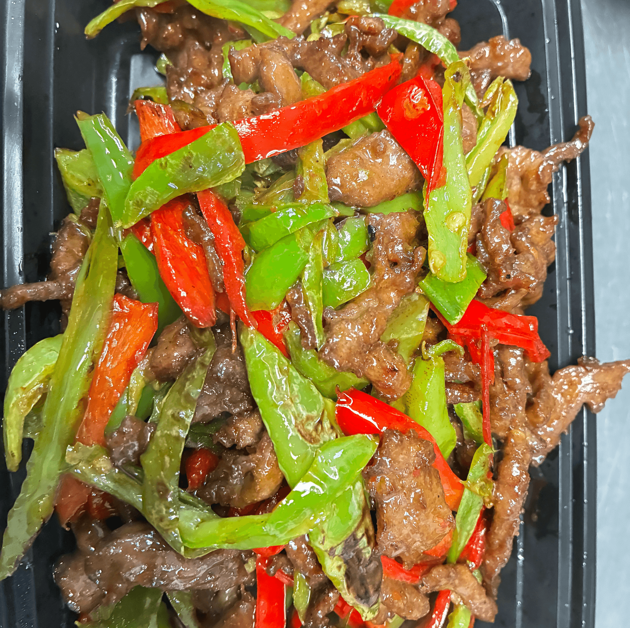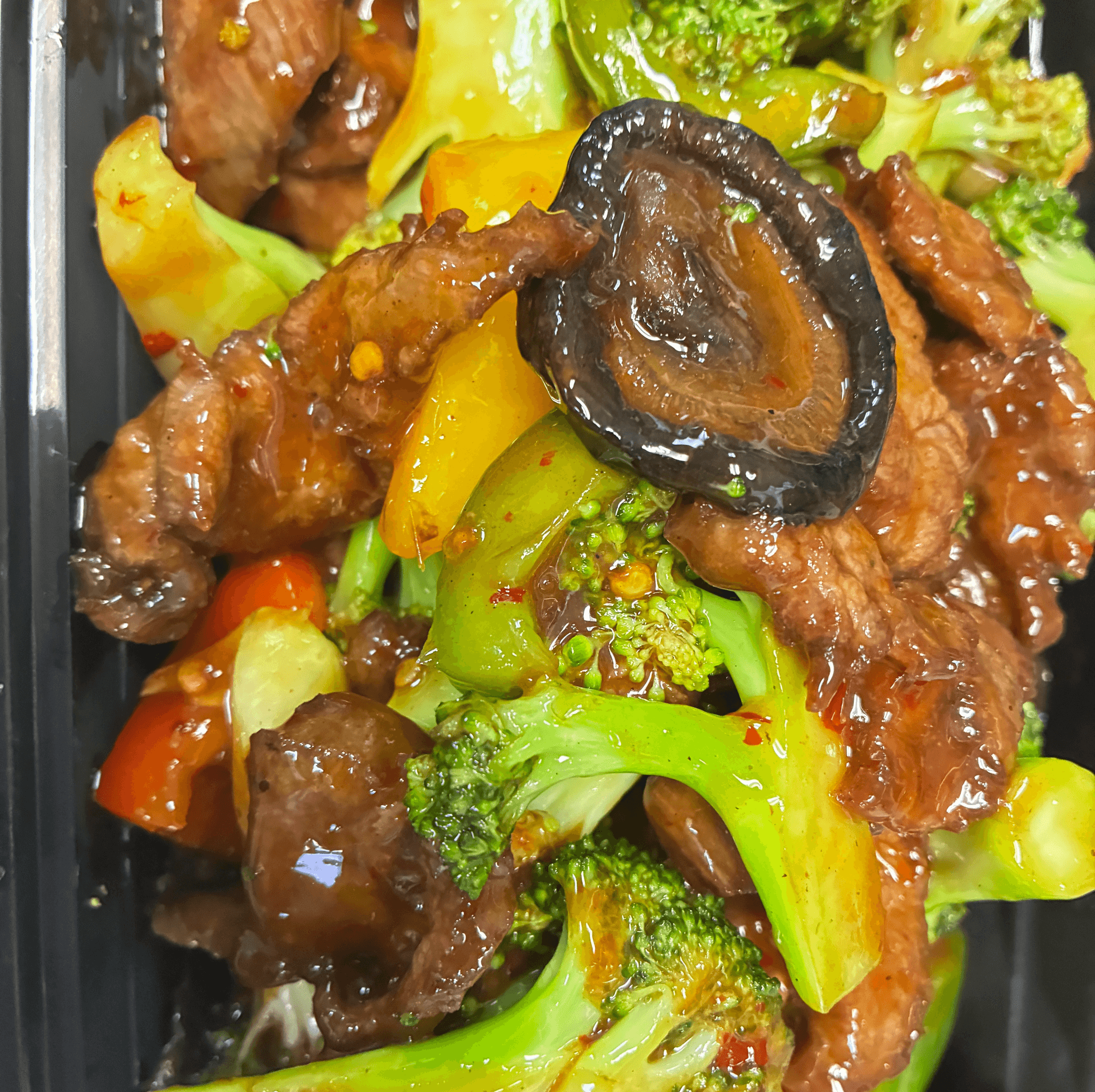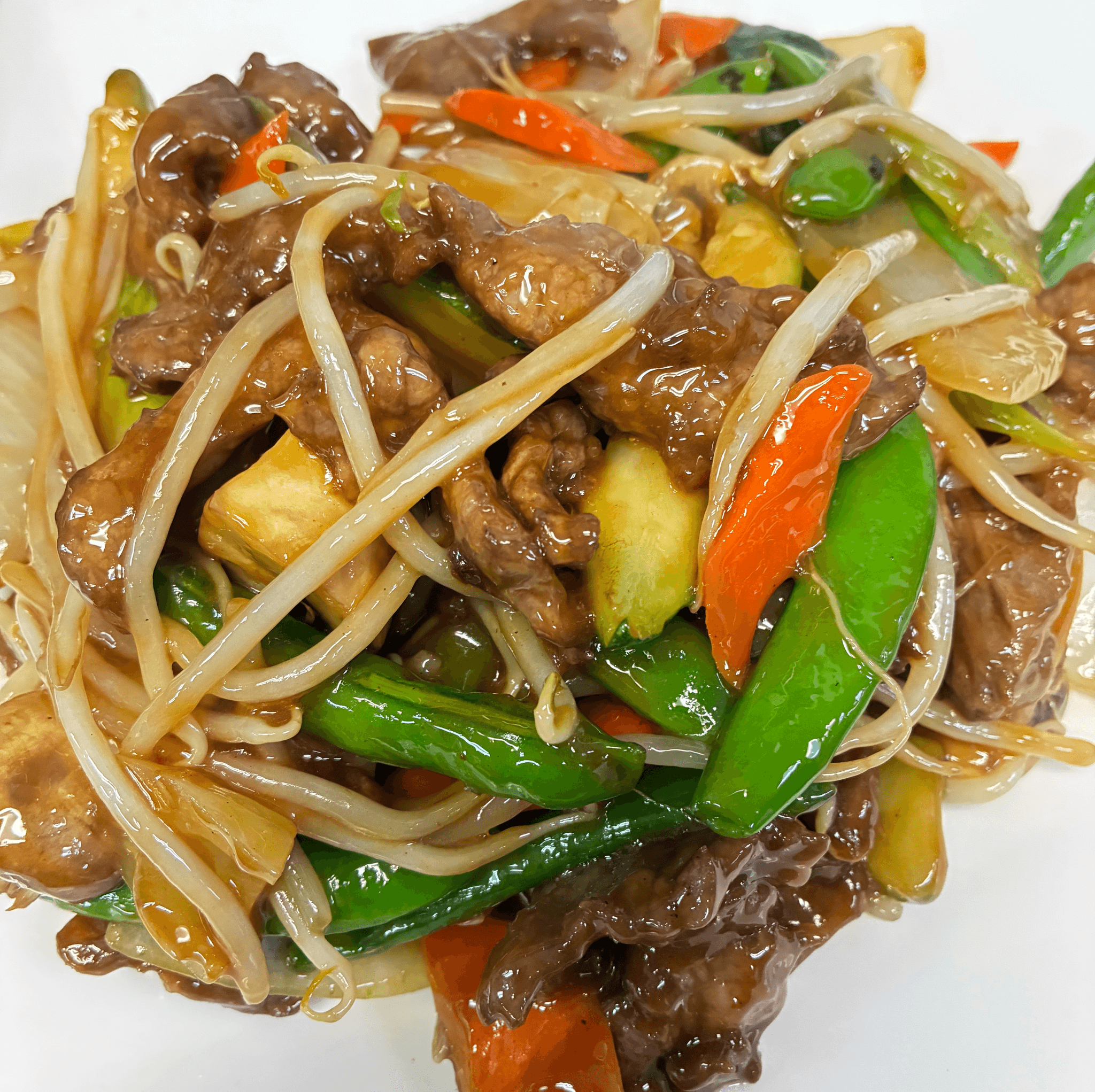 Served with white rice. Shrimp, scallops, beef, and chicken with mixed veggies in black bean sauce