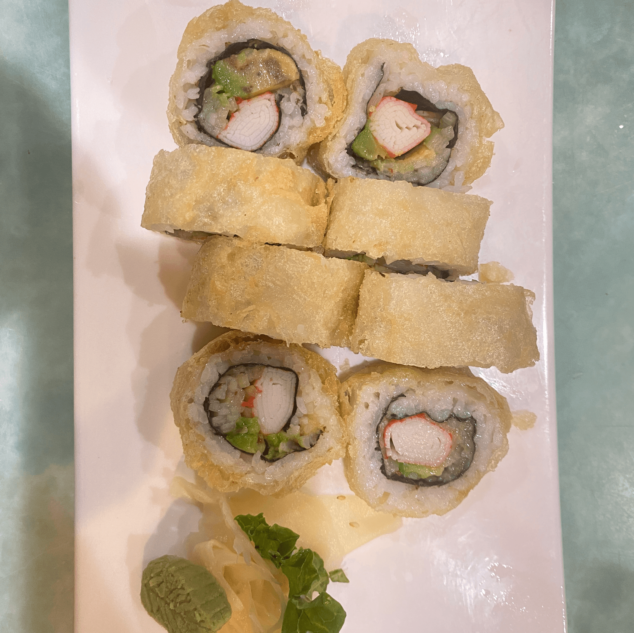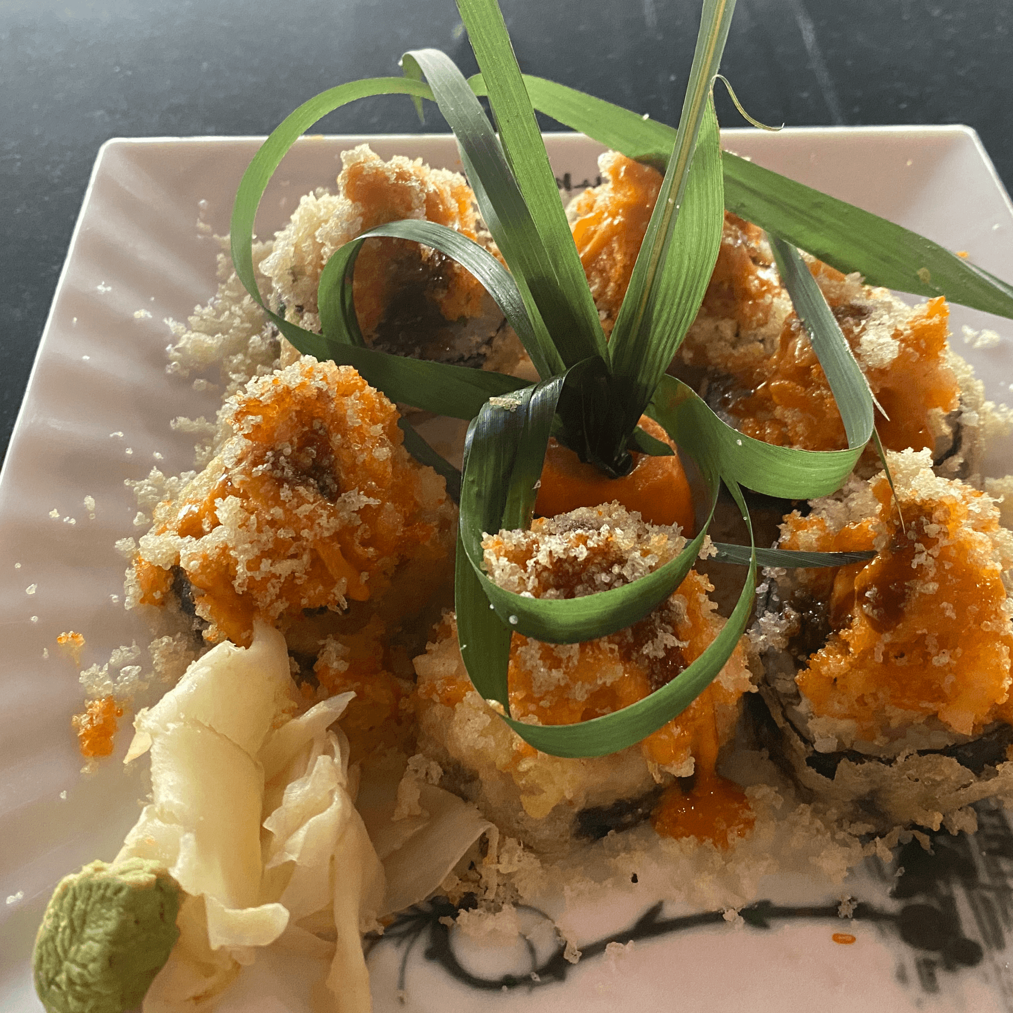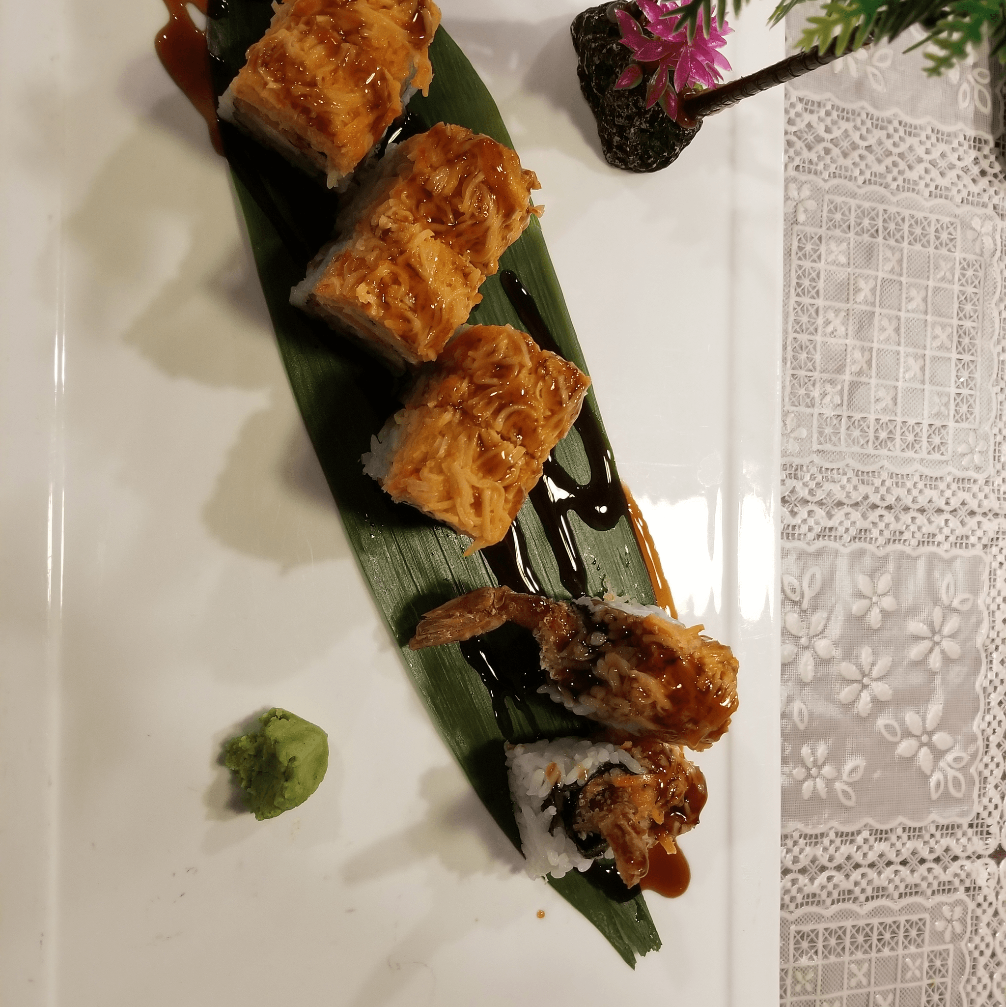 Deep-fried fish cream cheese inside, topped with spicy crabmeat eel sauce