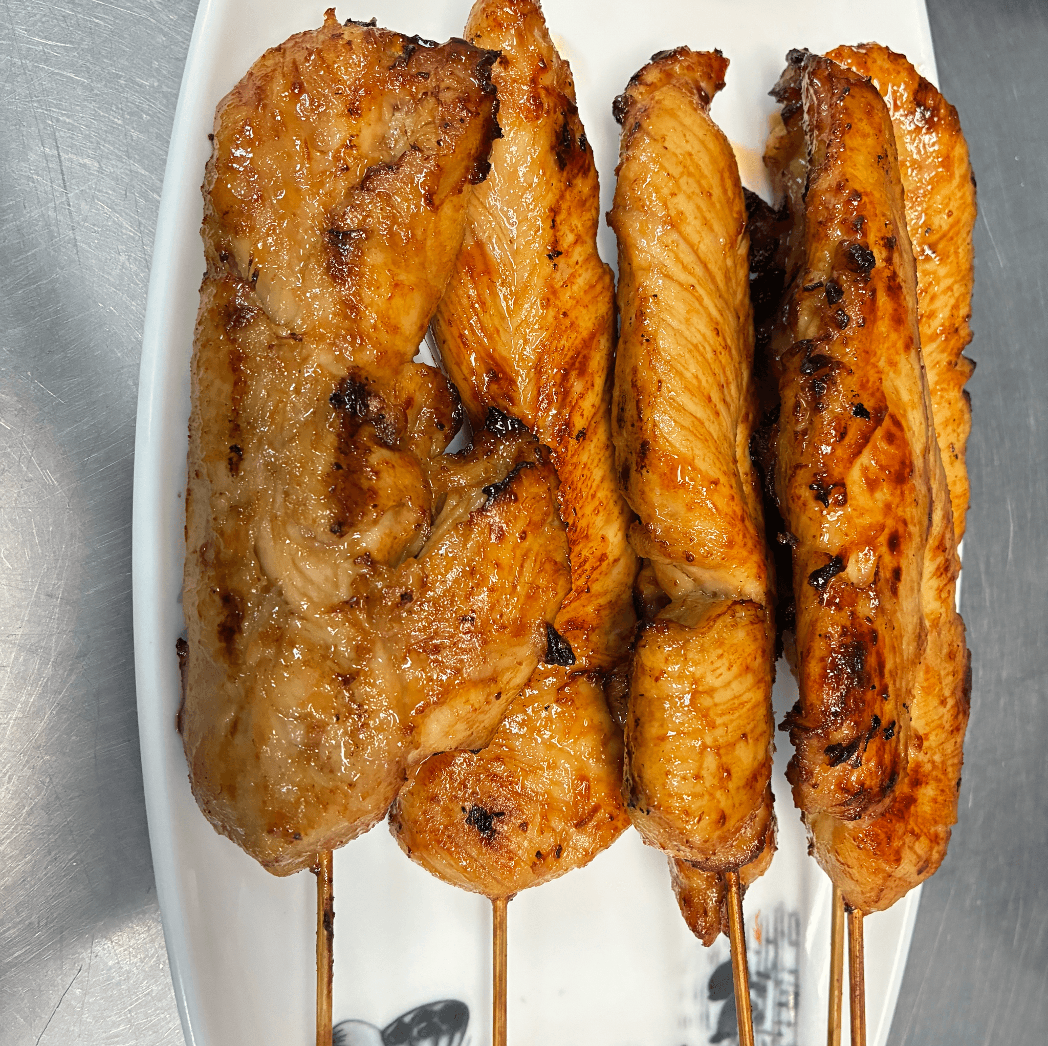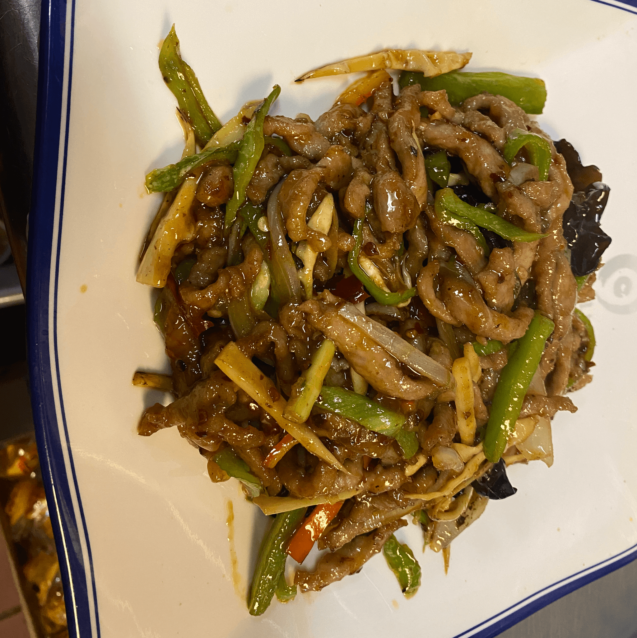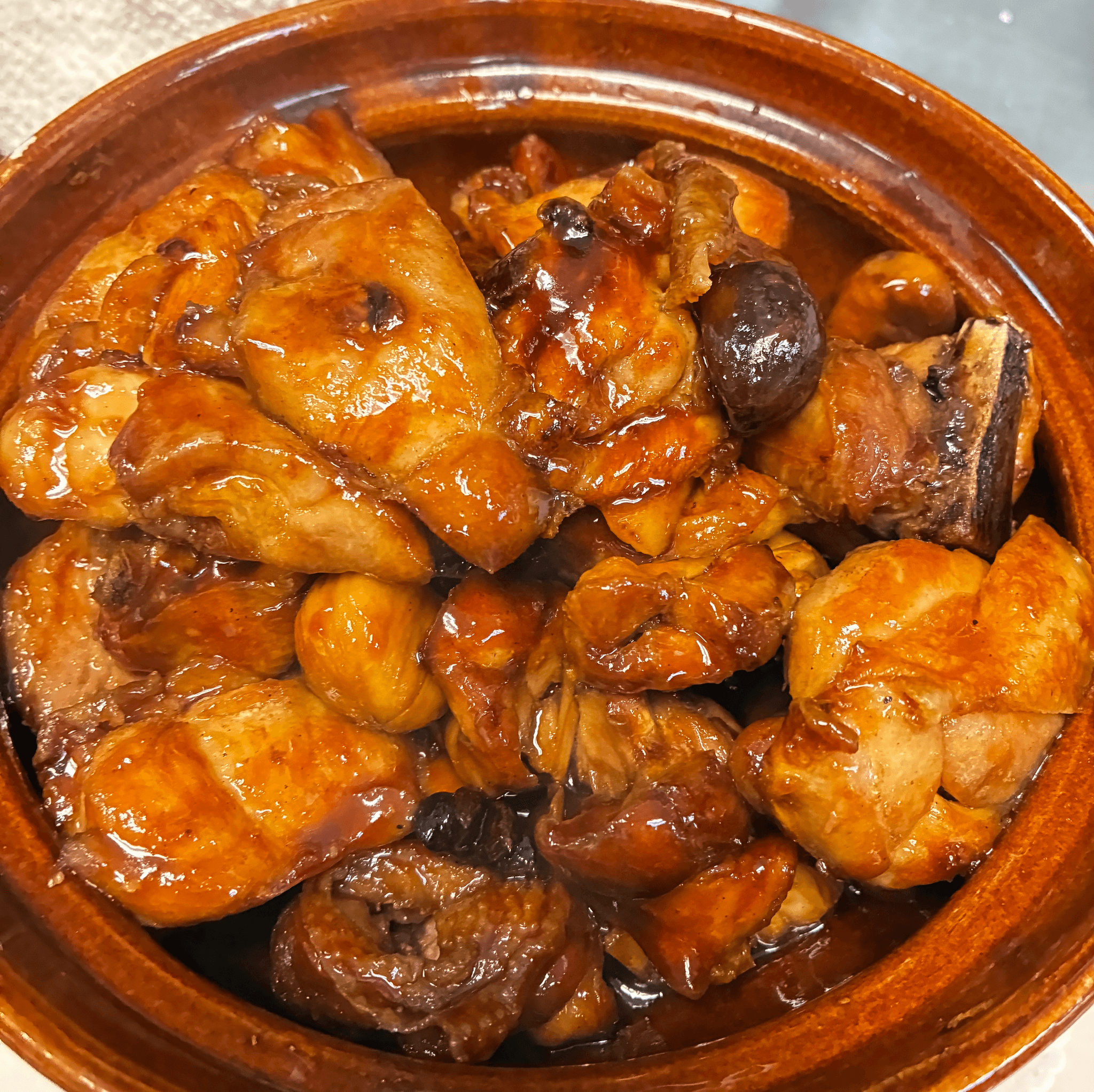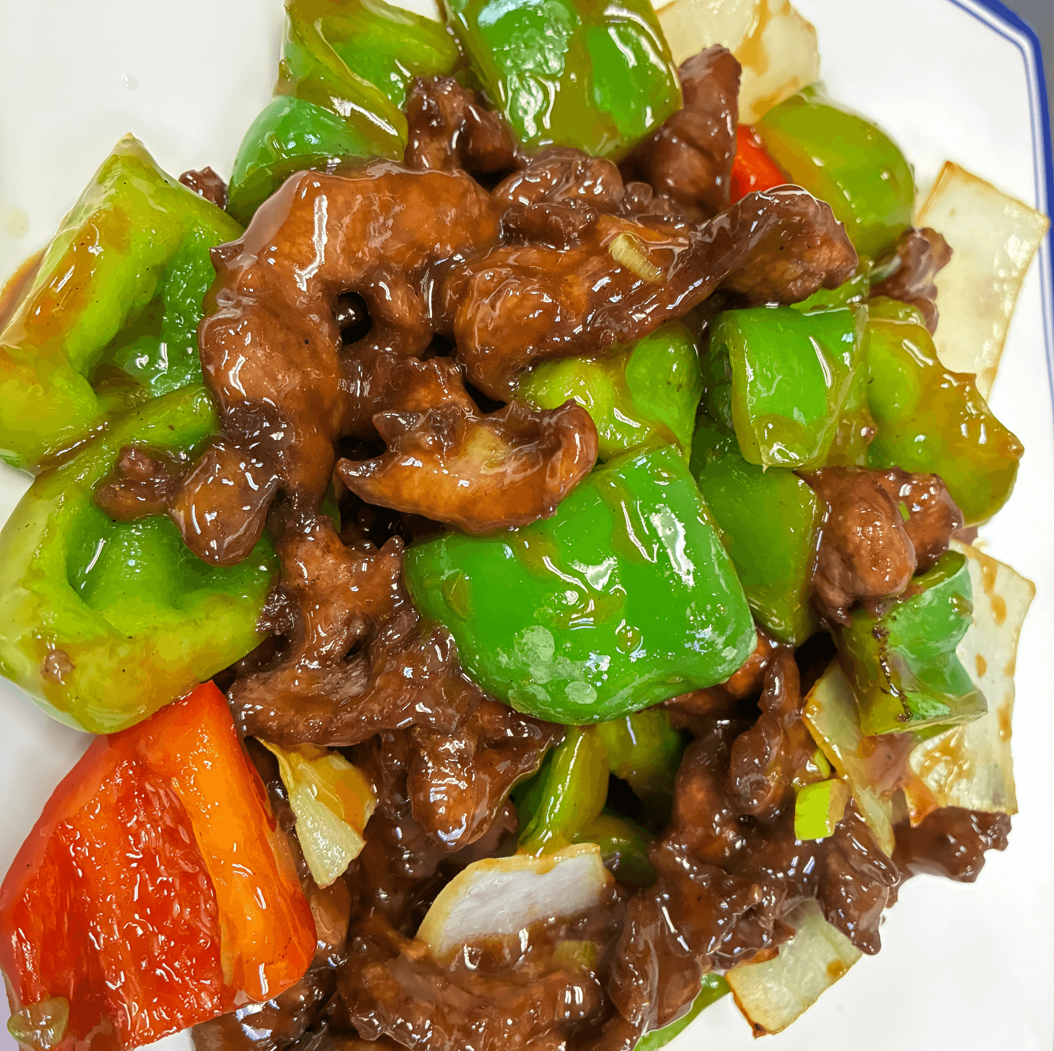 Stir-fried chicken and celery, pepper, and peanuts in spicy brown sauce. Spicy