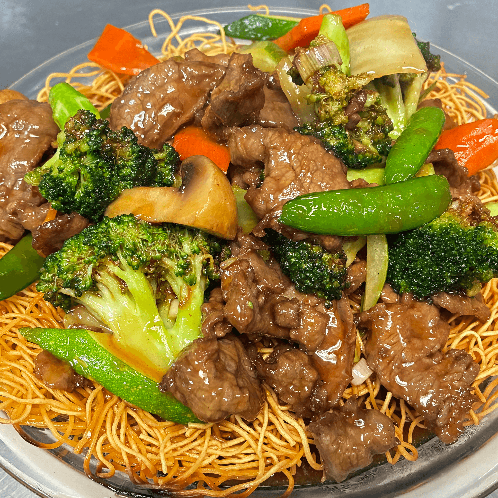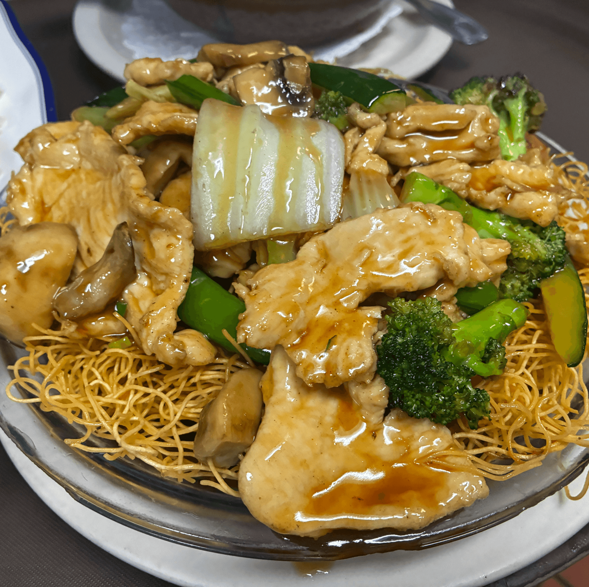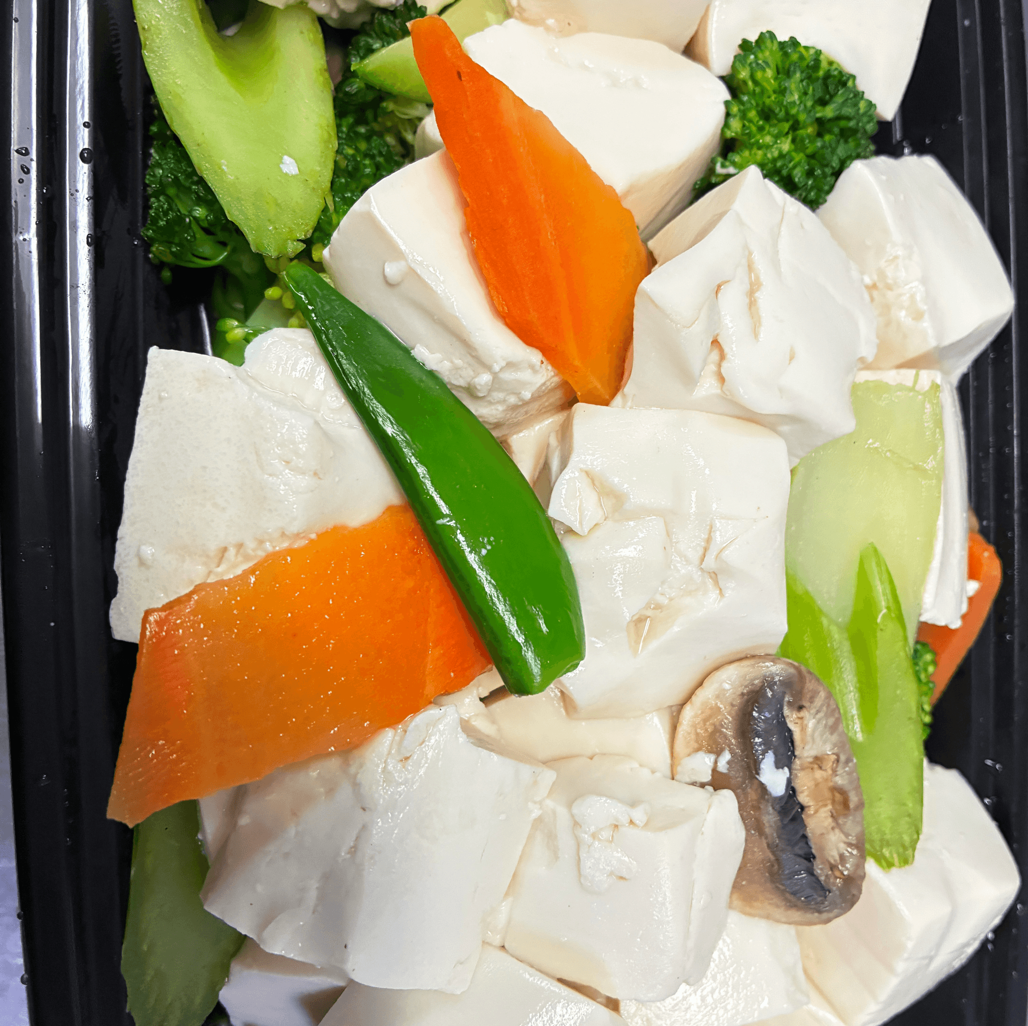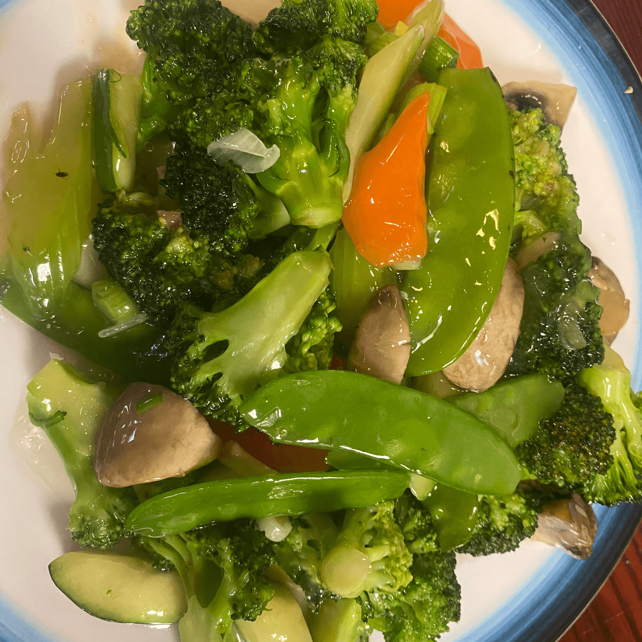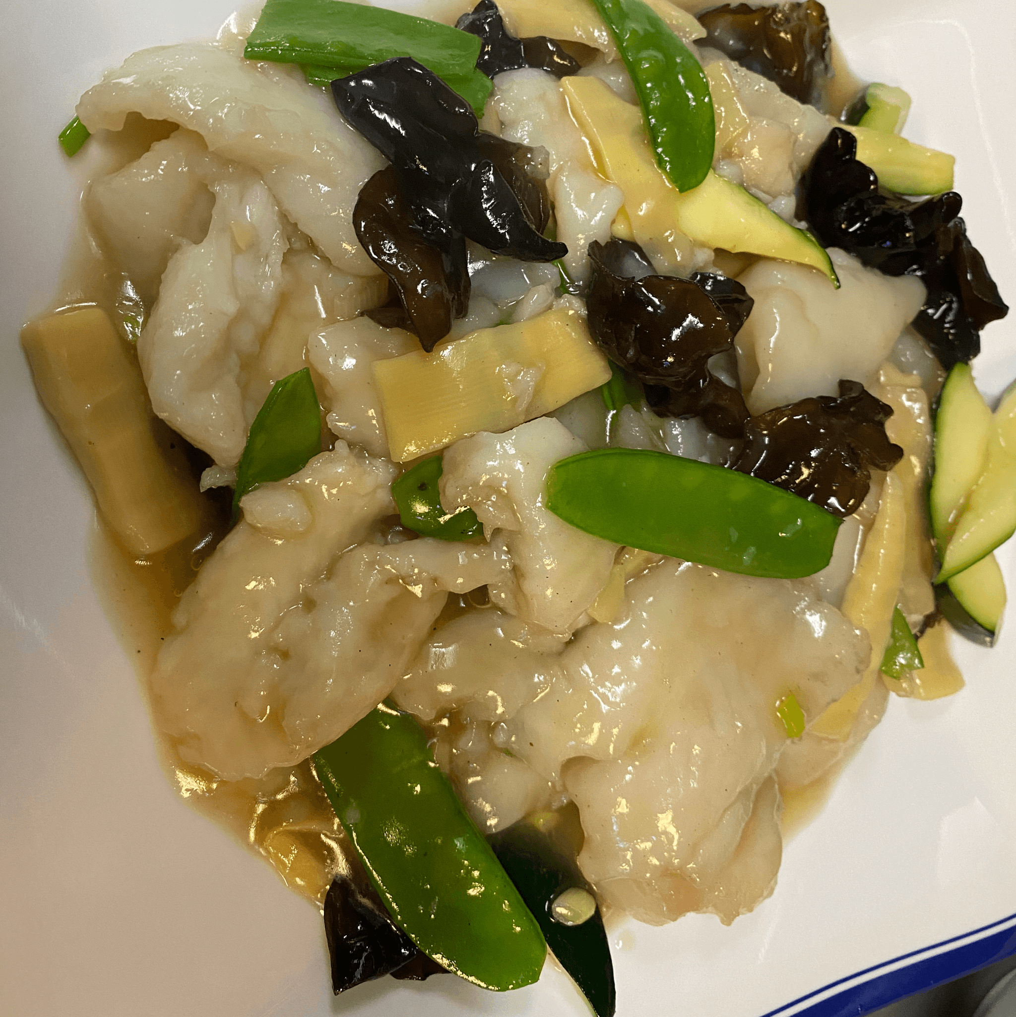 Served with white rice. Shrimp, sea scallops, and lobster tail mixed with Chinese vegetables in a white sauce