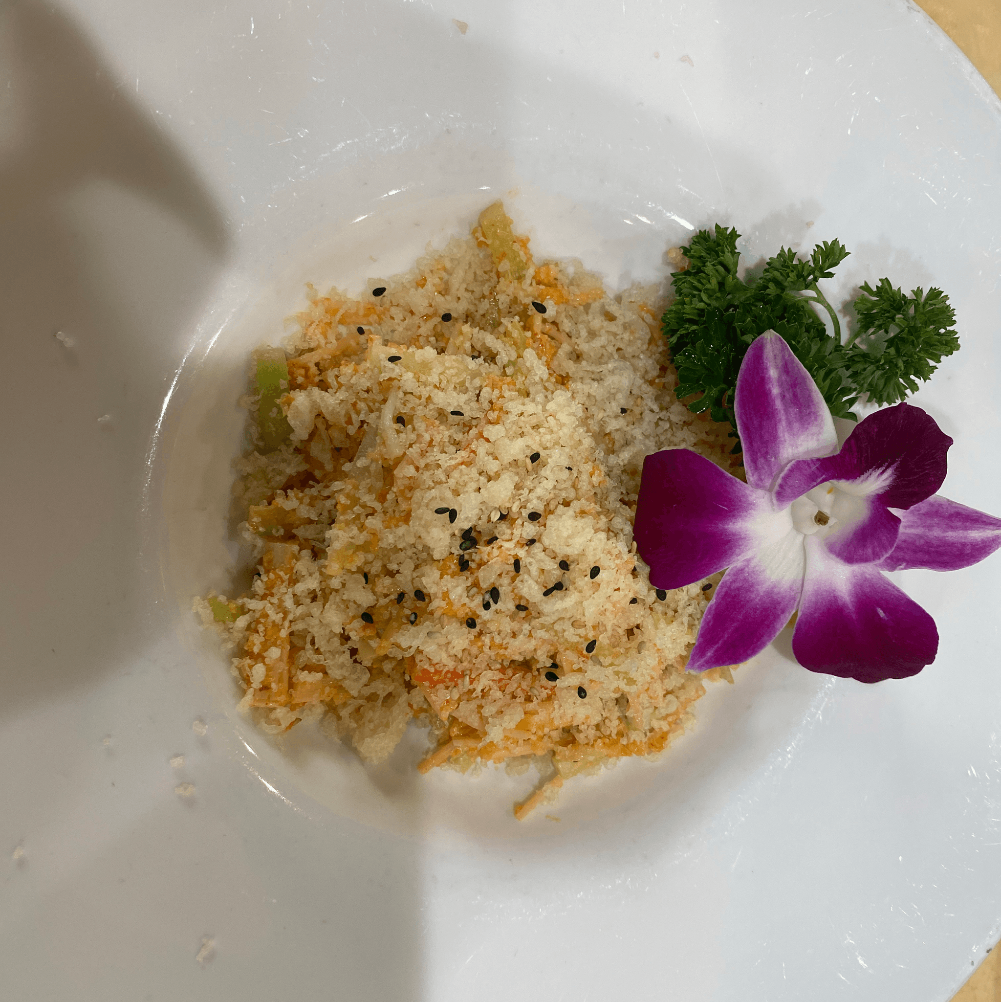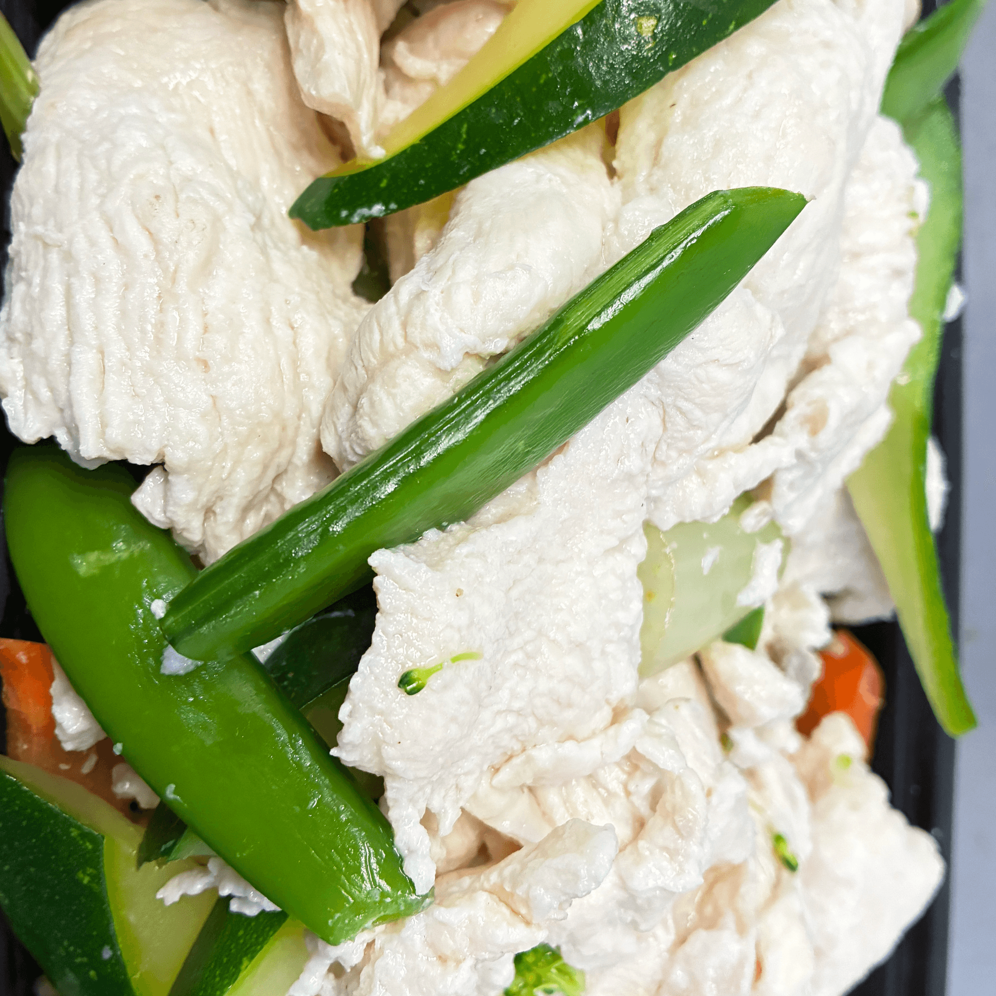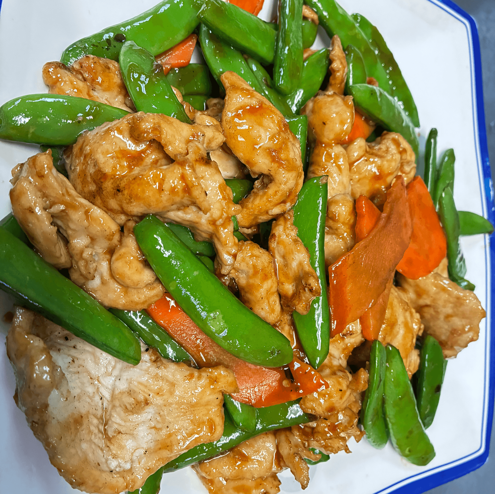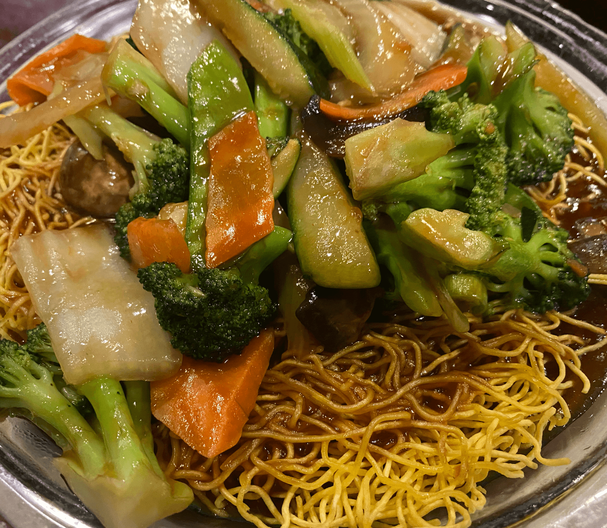 Served with white rice. Shrimp, sea scallops, and lobster tail mixed with Chinese vegetables in a white sauce