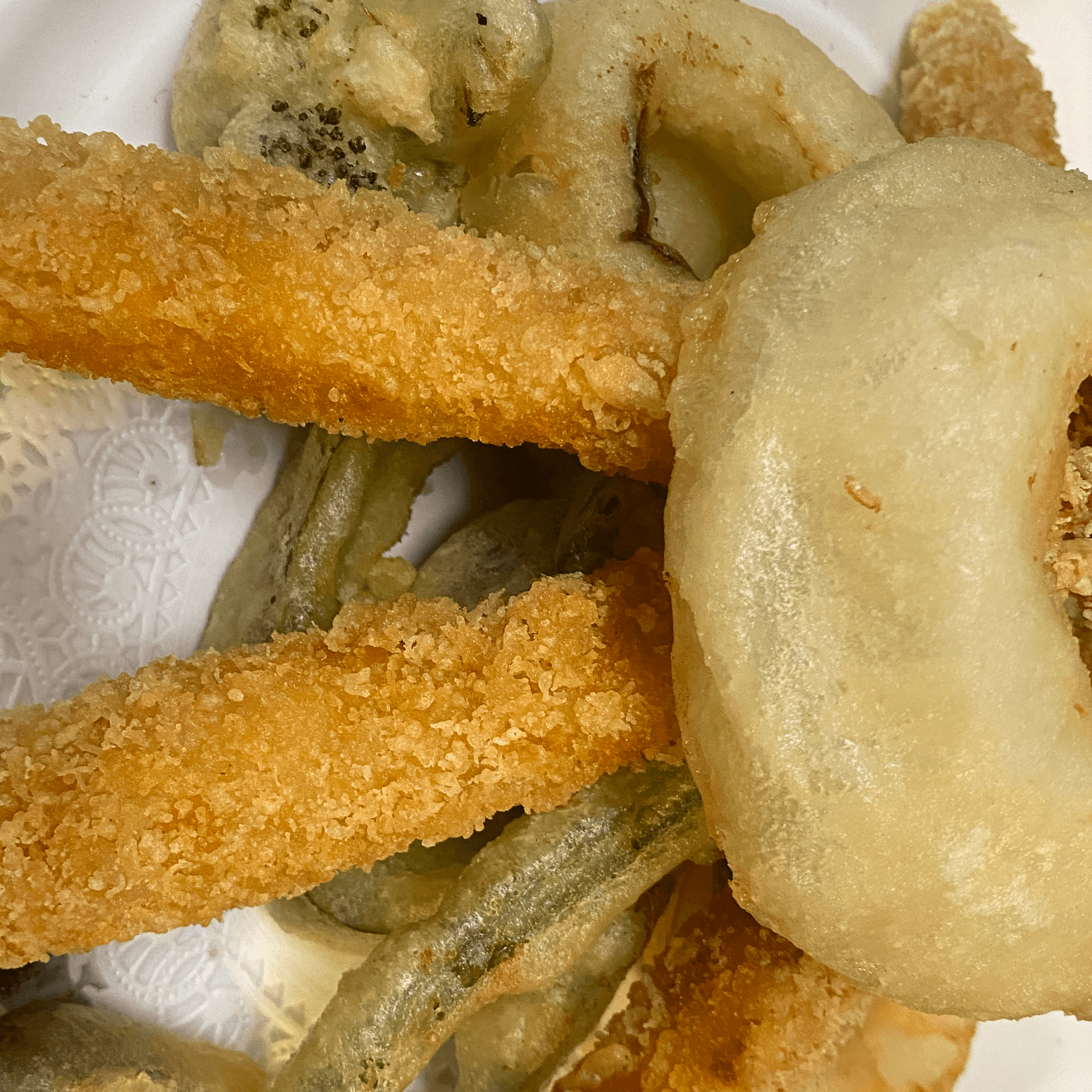 Batter fried fish, avocado, spicy mayo and eel sauce. Organic sushi rice. Hot and spicy