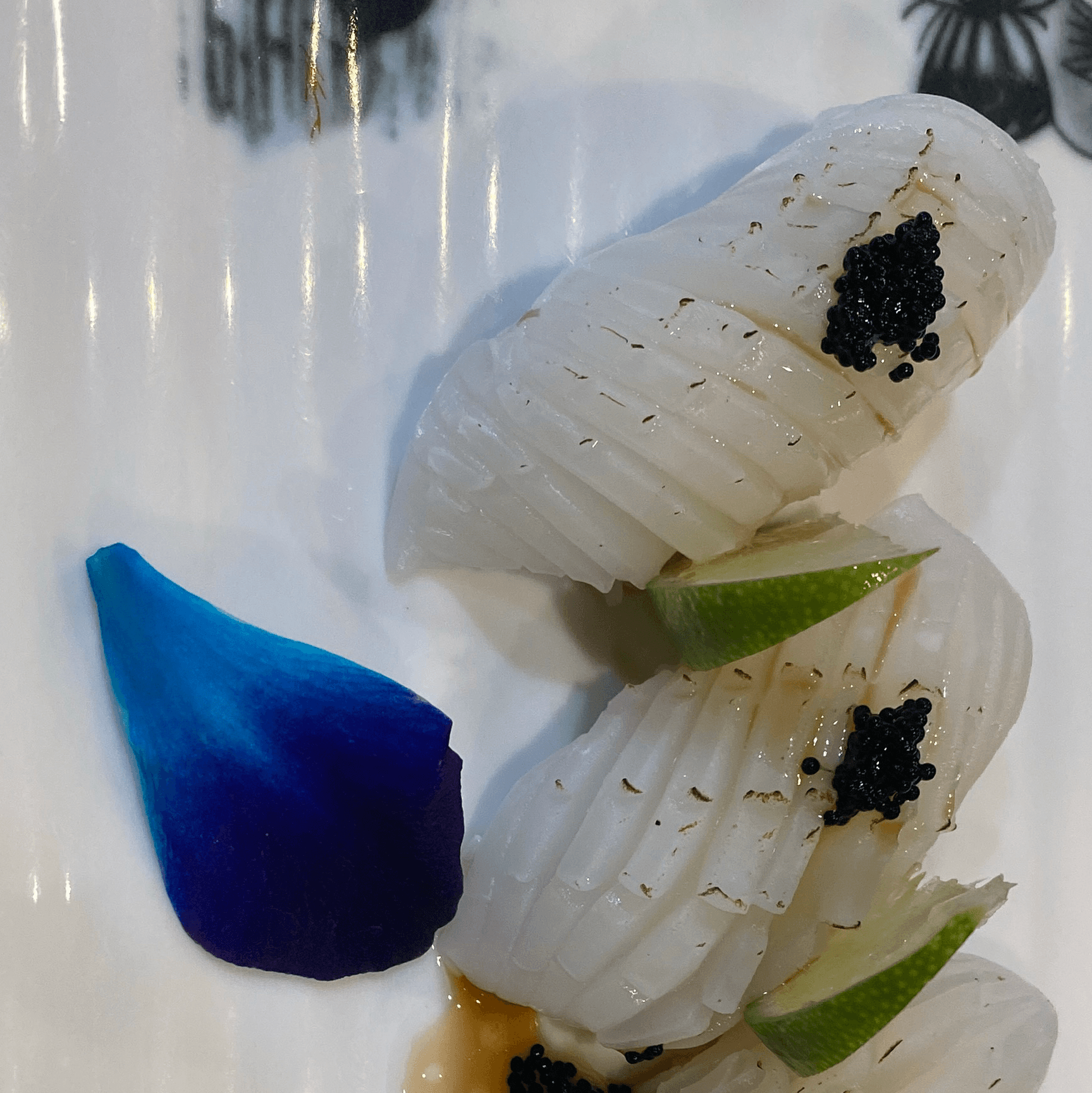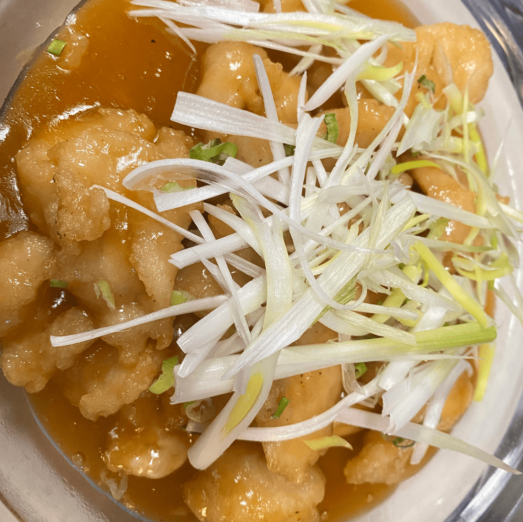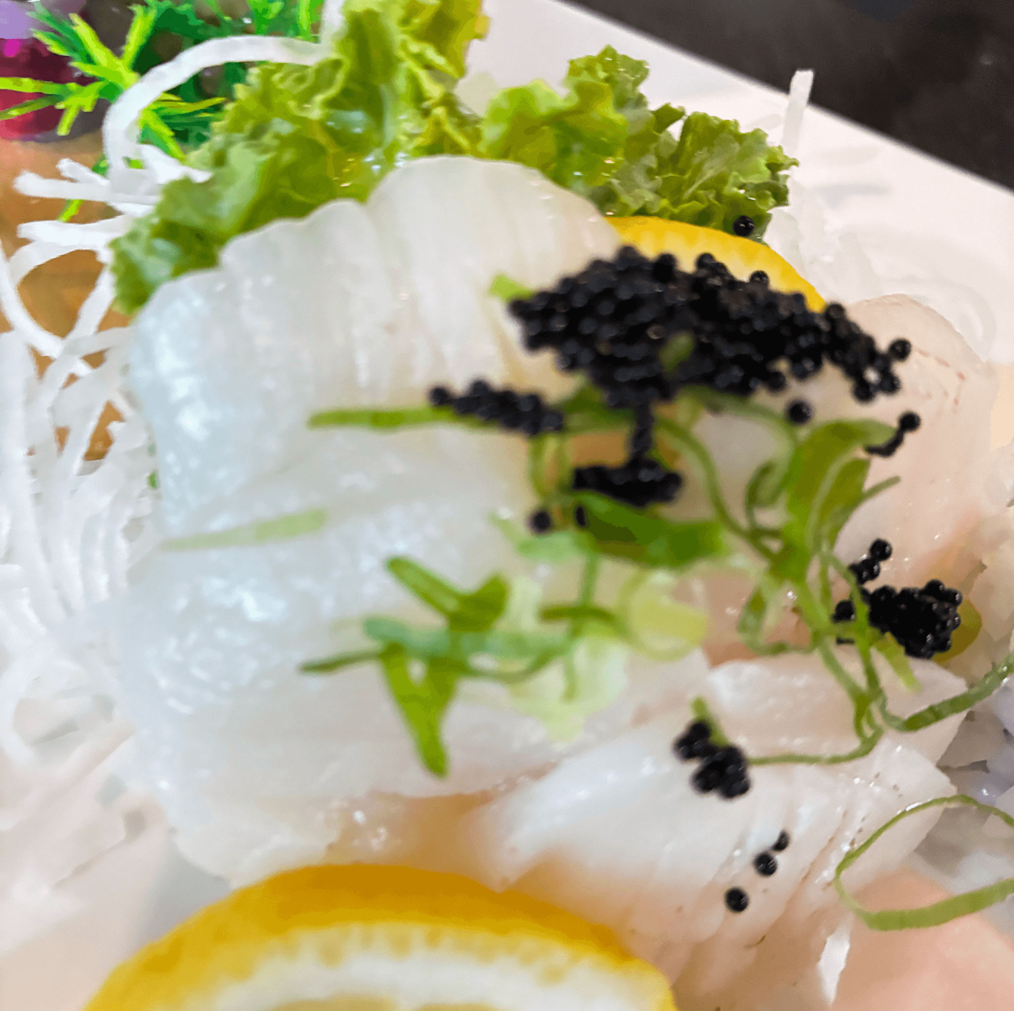 Pan-sear sirloin steak in Puzo sauce and topped with tobiko and scallion. Spicy.