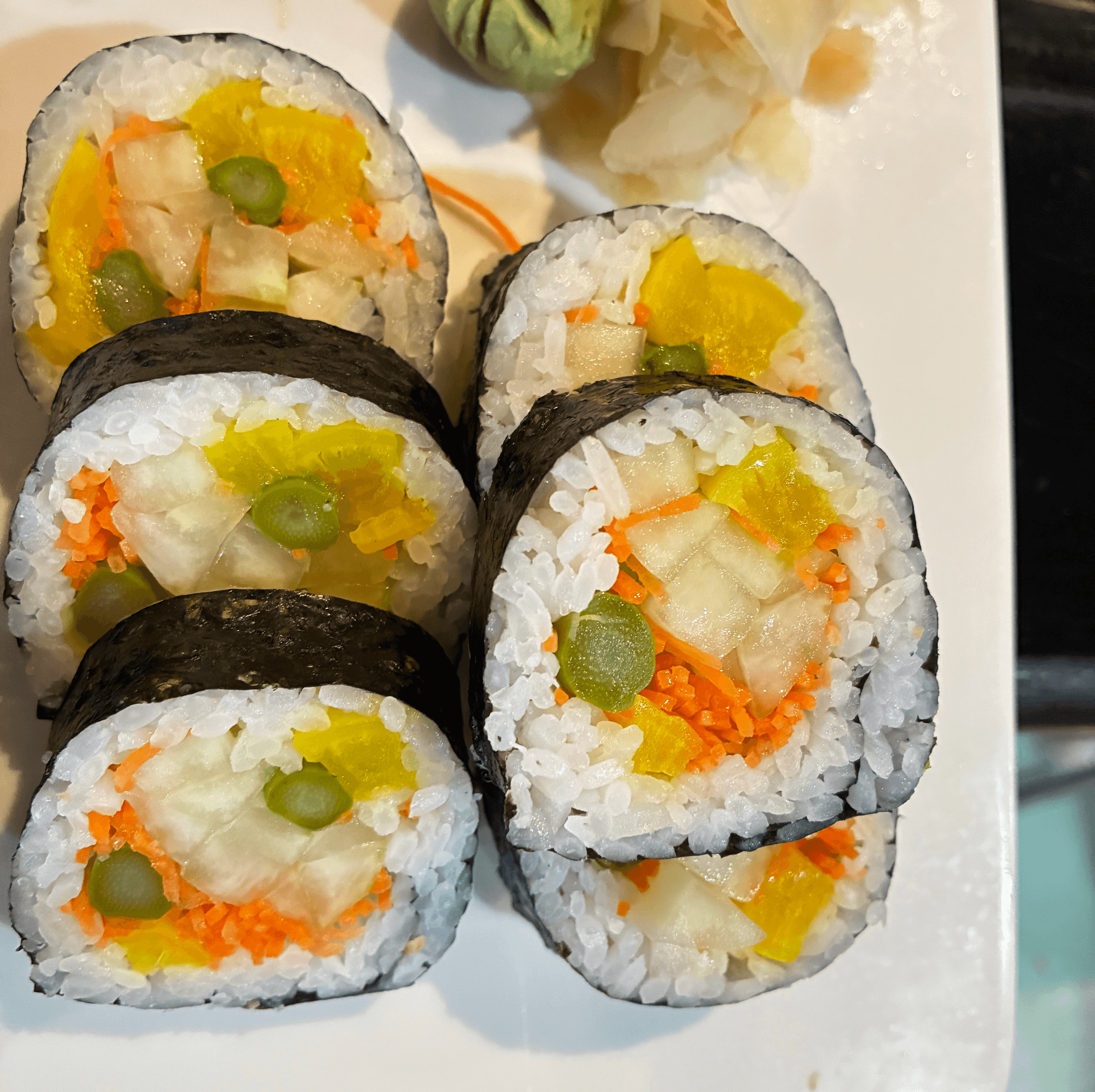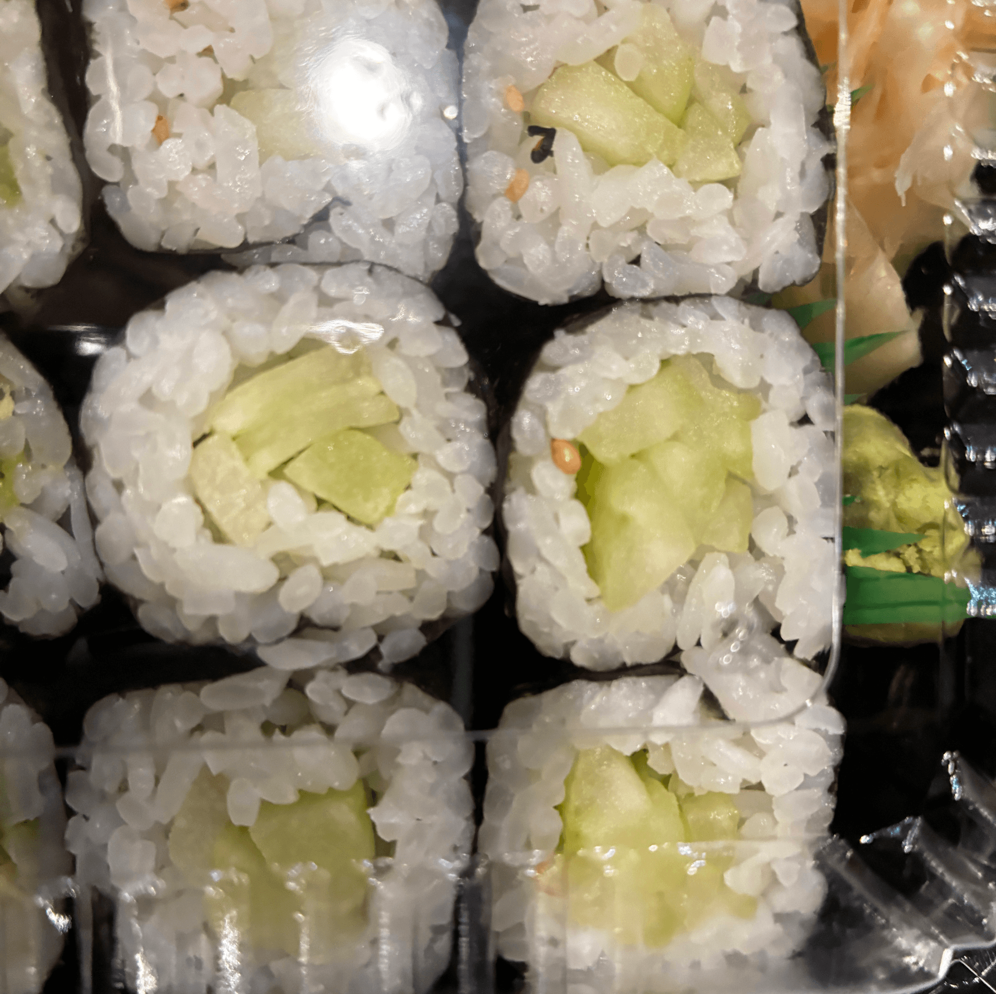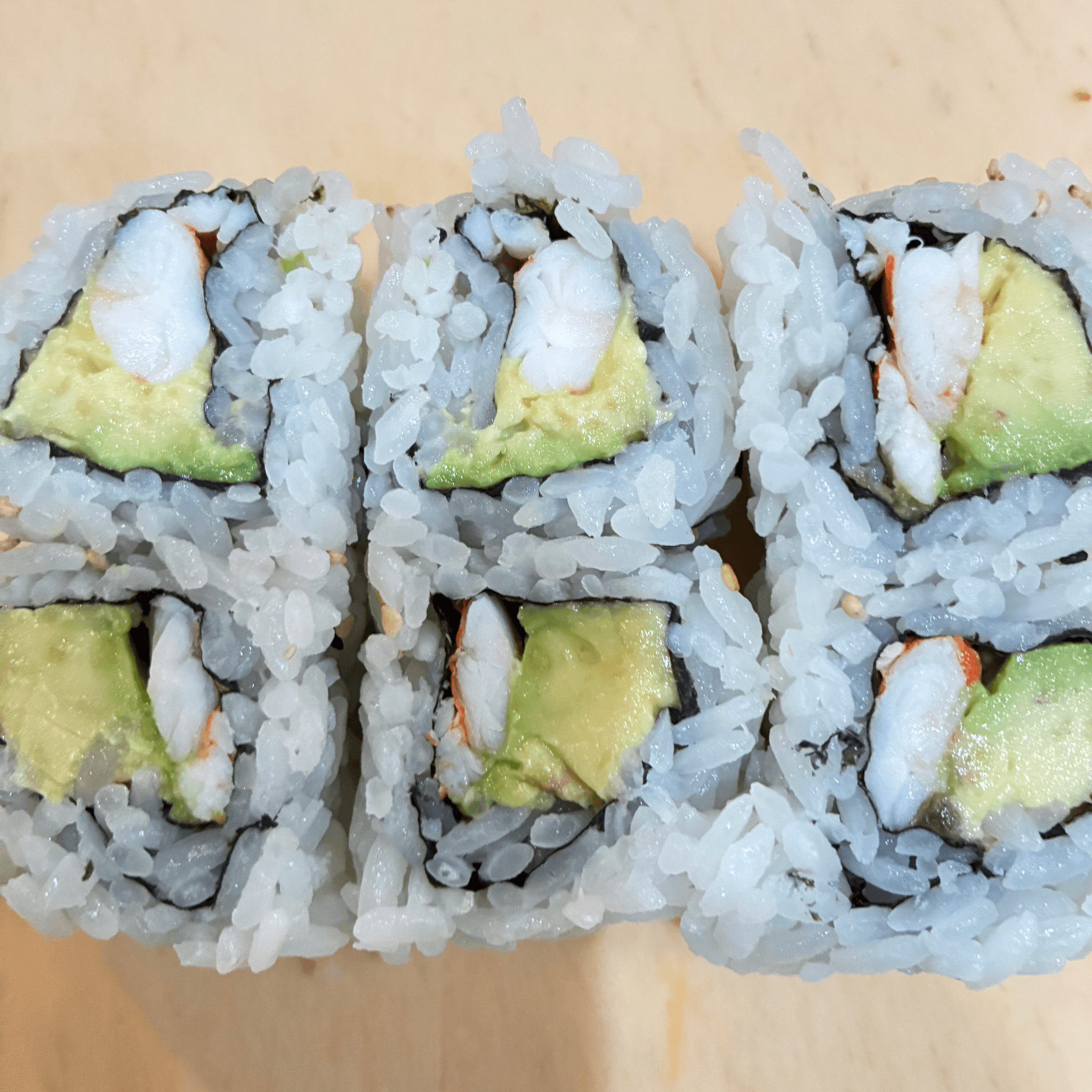Shrimp, cucumber, lettuce and mayo. Organic sushi rice