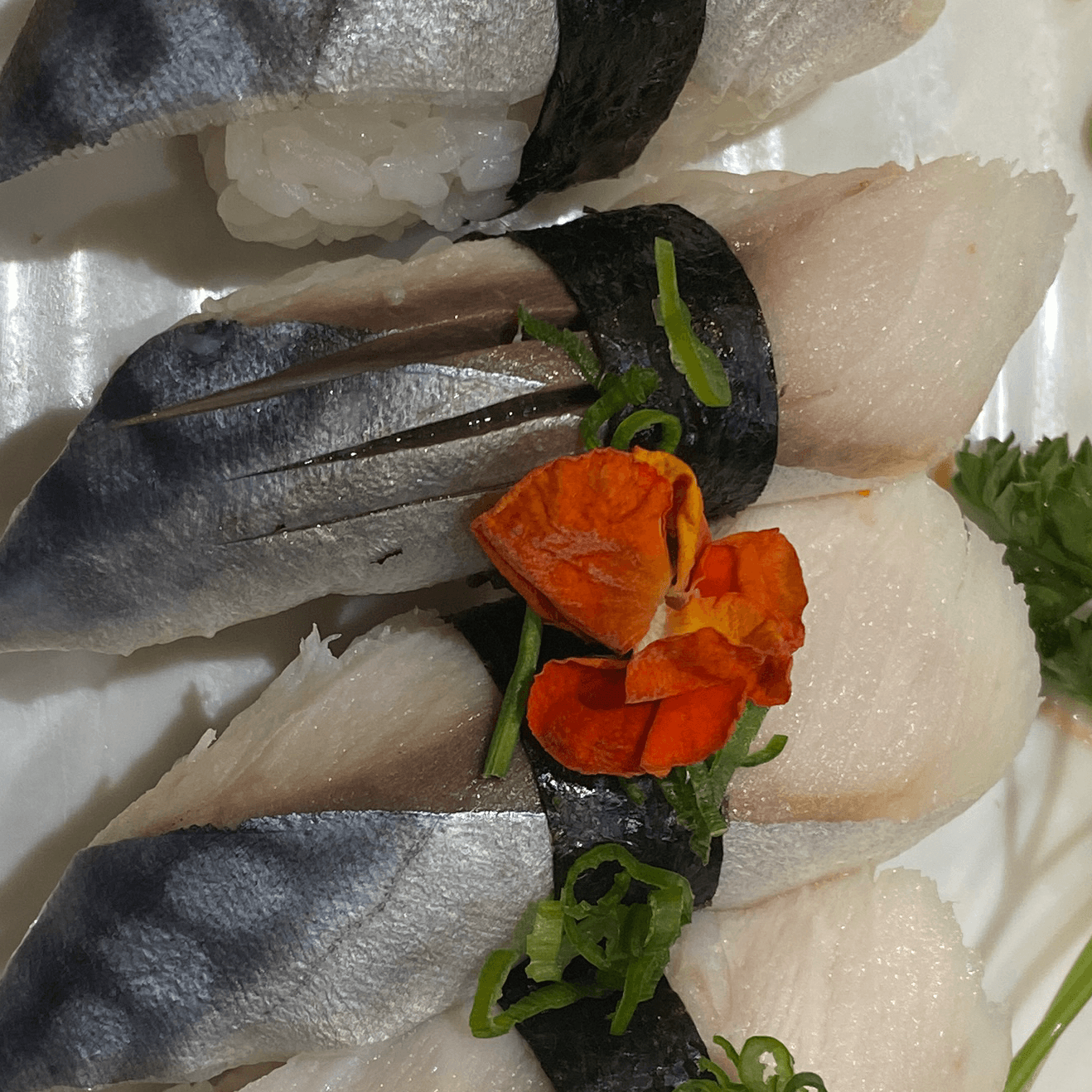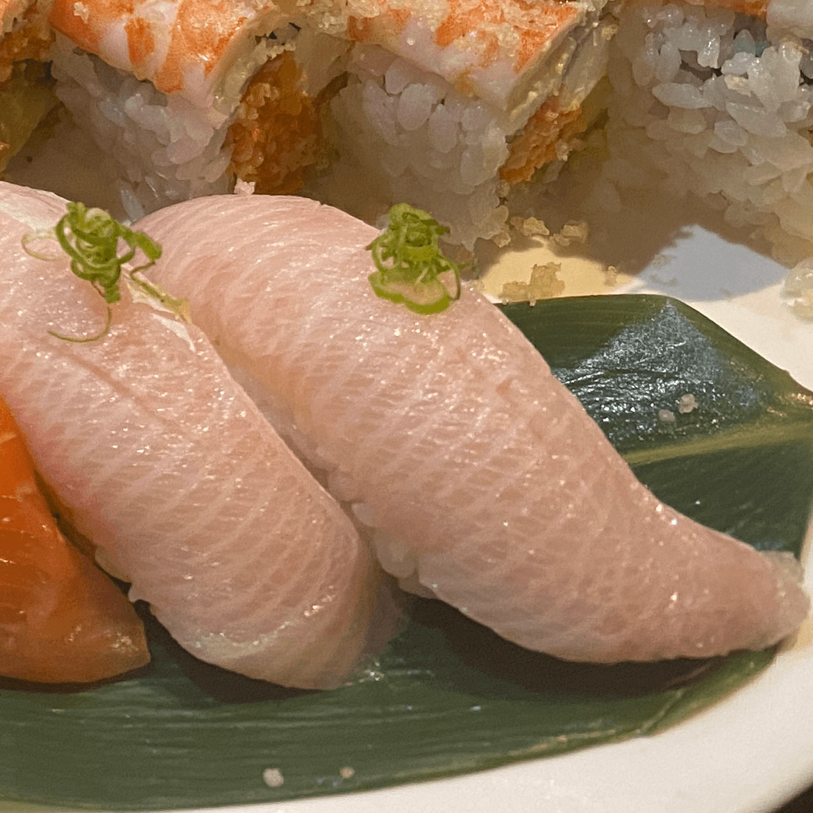 Crabmeat and avocado inside topped with tuna, yellowtail and salmon. Organic sushi rice