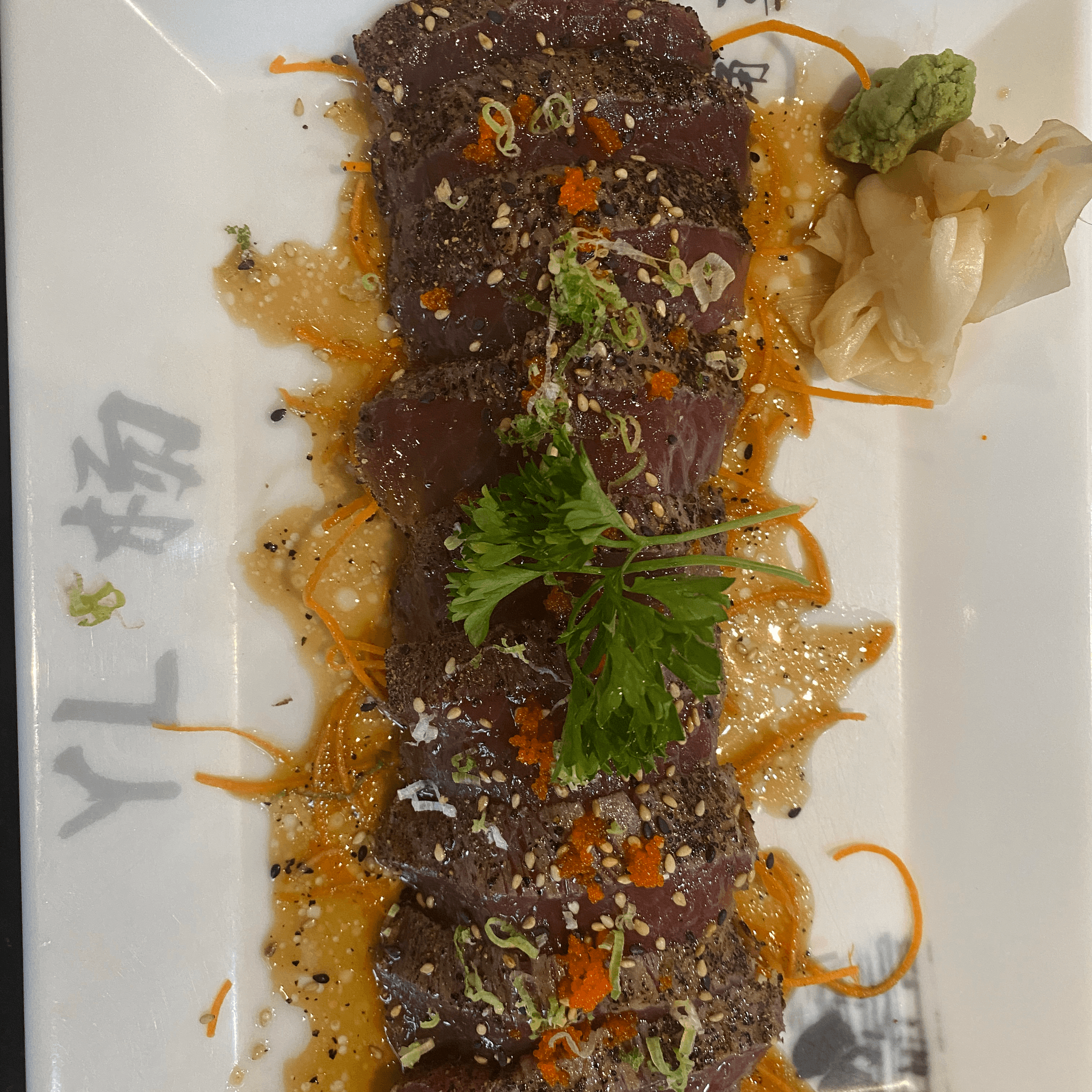 Sliced fresh tuna with pepper seared with chef's special sauce