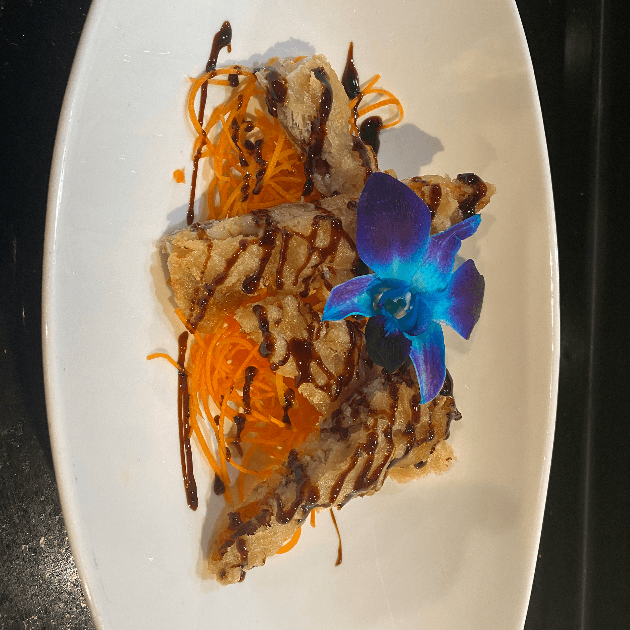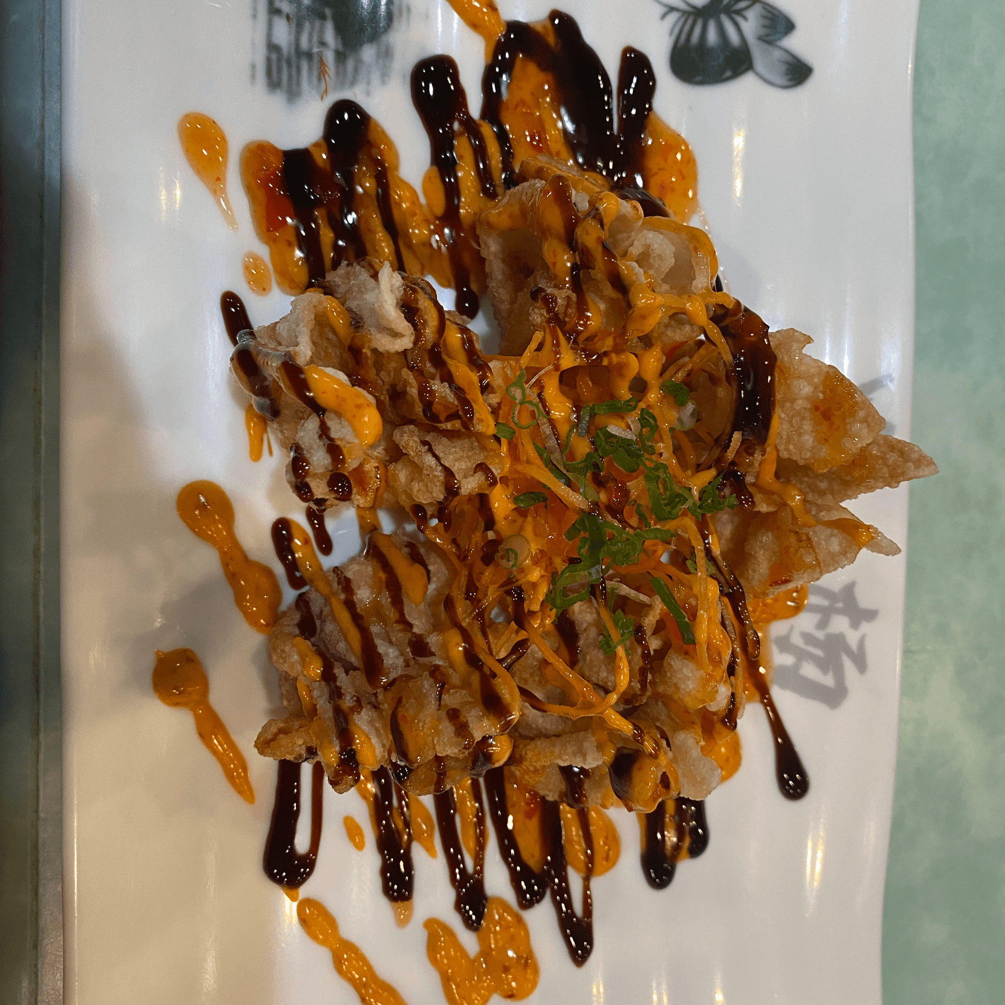 Spicy tuna and cream cheese wrapped in a deep fried crispy wonton. Served with chef's special sauce. Spicy