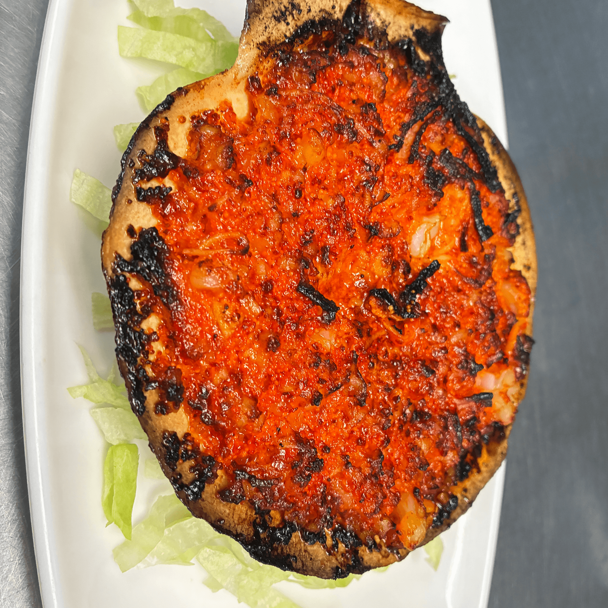 Scallops, shrimp and mushrooms grilled with homemade creamy spicy sauce. Spicy