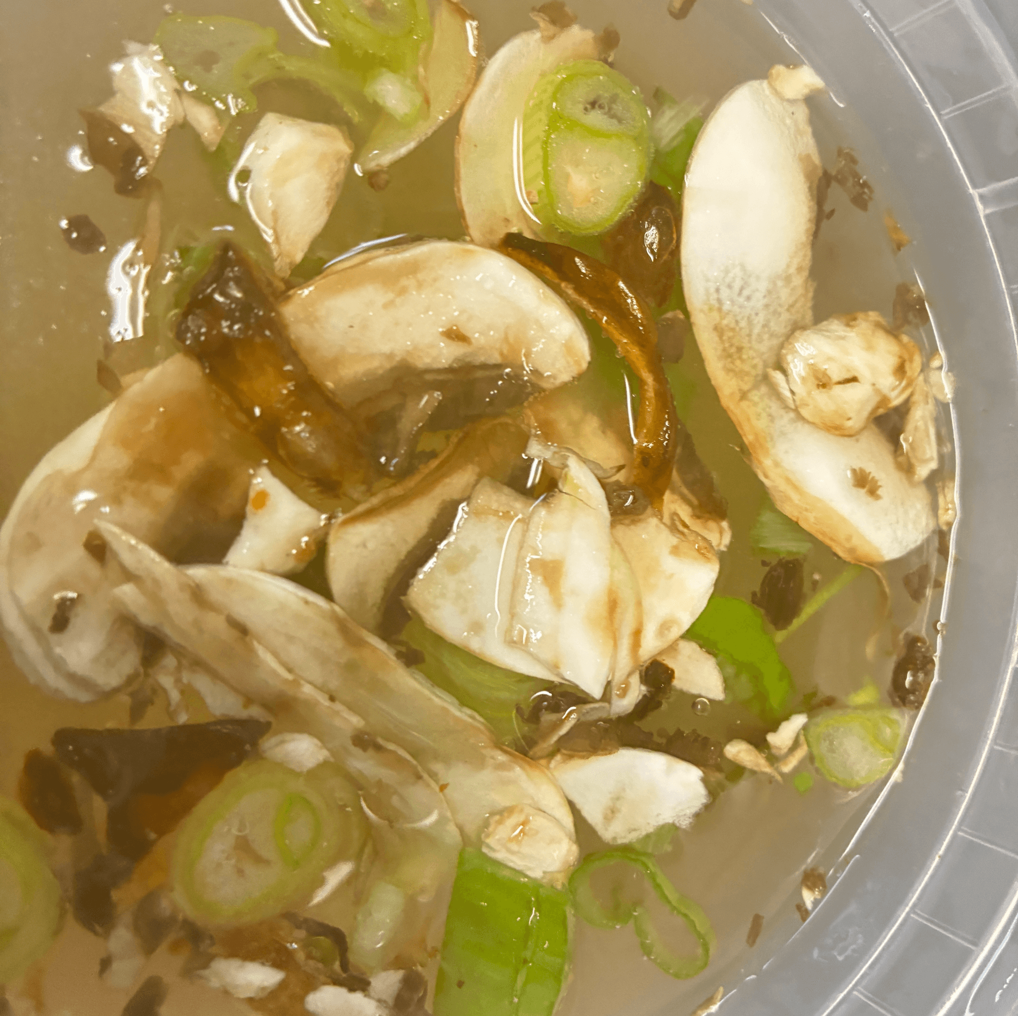 Stir-fried beef with mushrooms in oyster sauce. Served with white rice