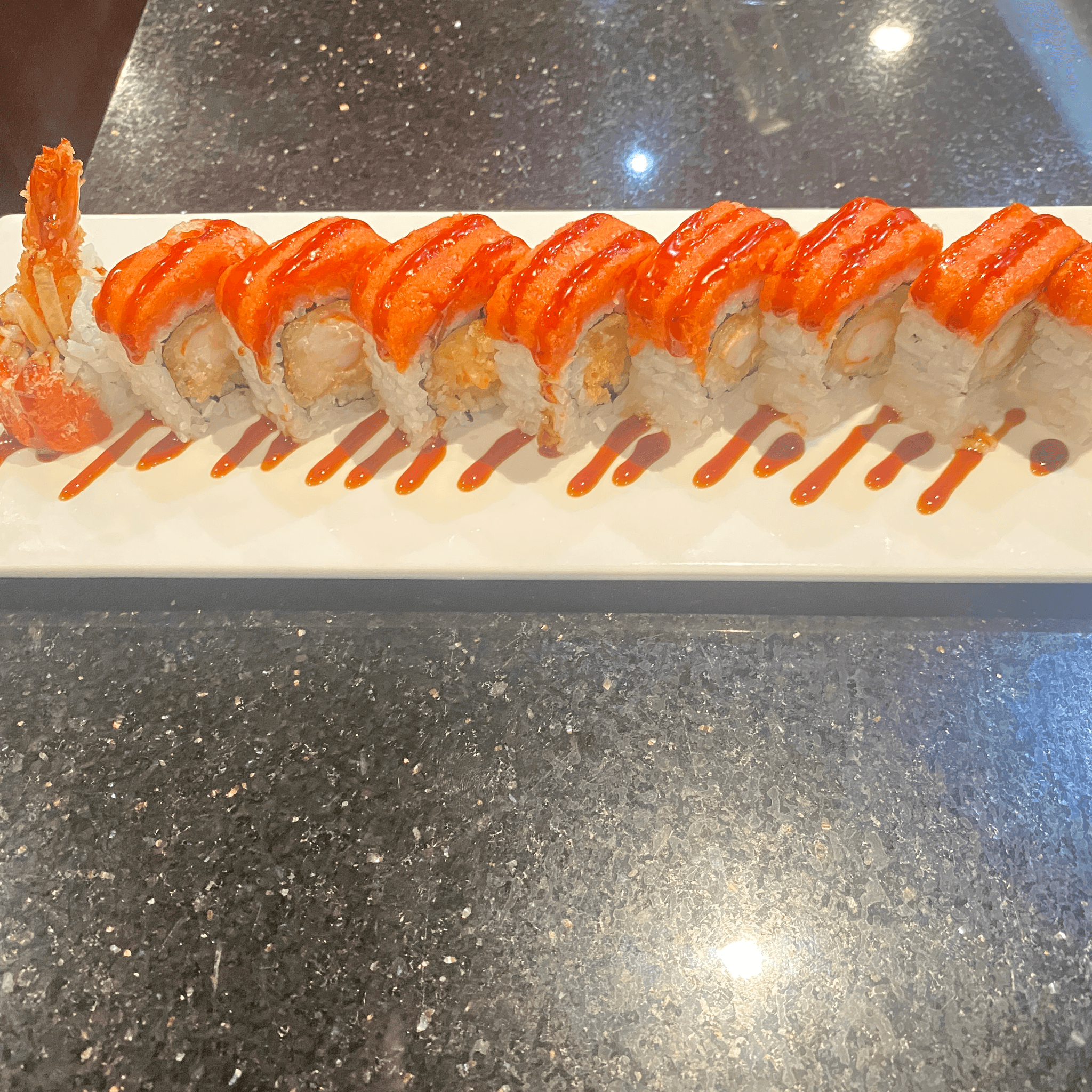Shrimp tempura inside topped with crabmeat, avocado, spicy mayo, eel sauce and tobiko. Organic sushi rice. Hot and spicy